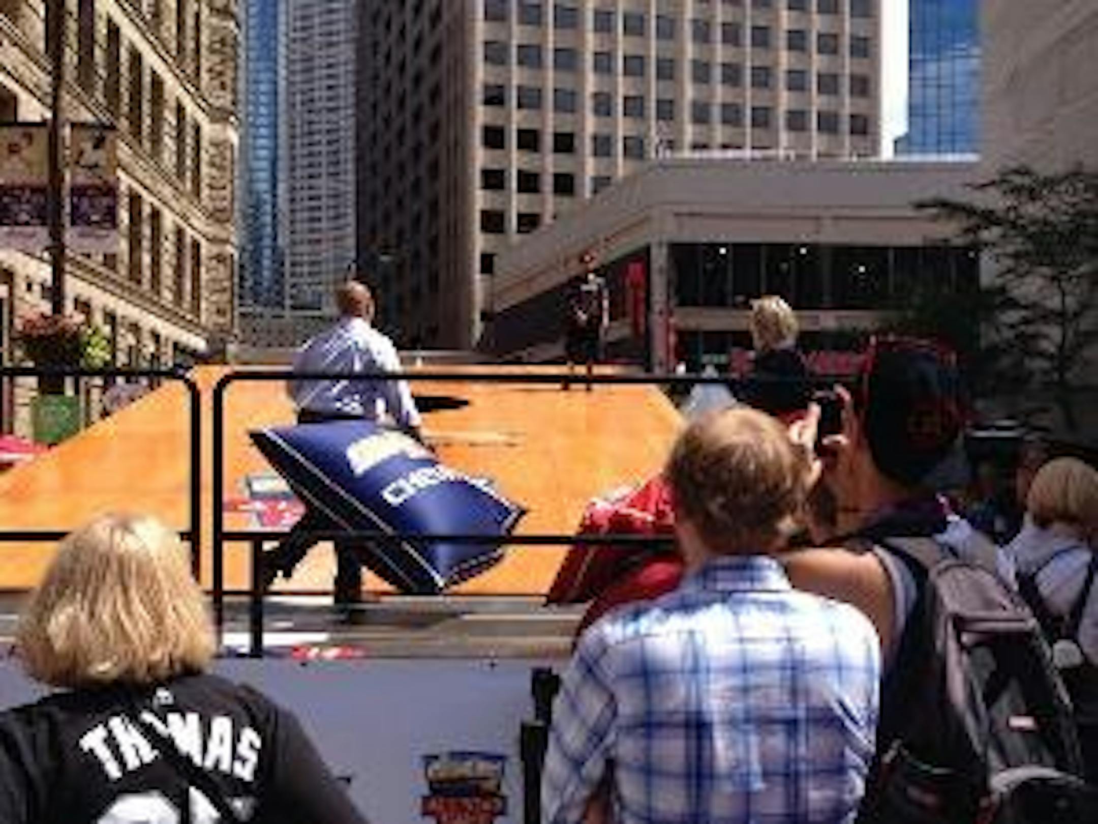 1) We started out at the IDS building in Minneapolis, where former Vikings punter Chris Kluwe and his attorney, Clayton Hanunen, announced they planned to sue the Vikings if the team does not release results of an investigation into Kluwe's claims. You'll note that Kluwe is wearing a "Punters are people, too" t-shirt.