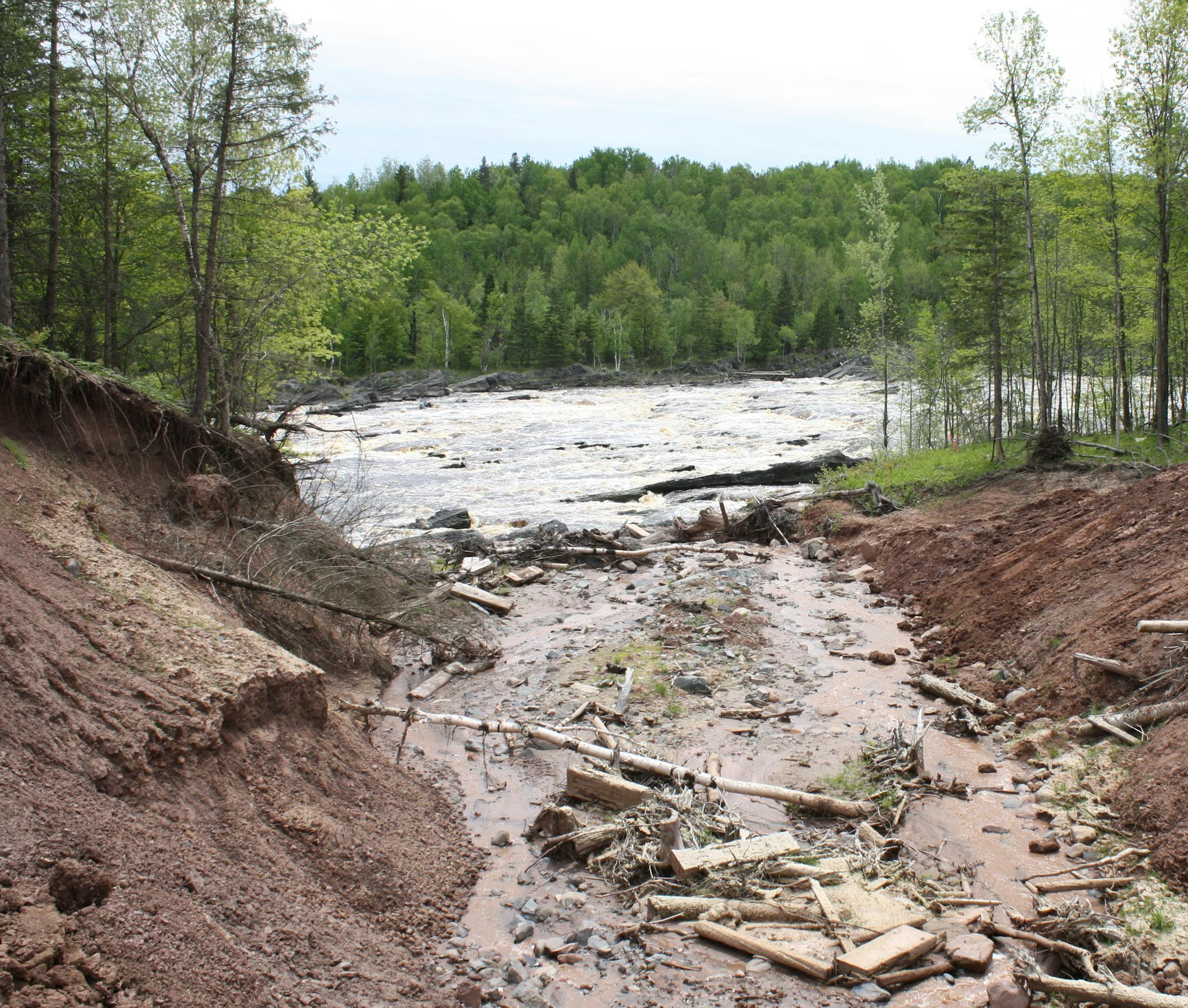 A new bridge, the Forbay Bridge, was built in 2013. The floods had overwhelmed a levee within Jay Cooke, breaching a portion and sending even more water cascading through the park toward Lake Superior. A section of the roadway was so badly washed out that engineers built the new bridge to span the gully rather than fill it in.