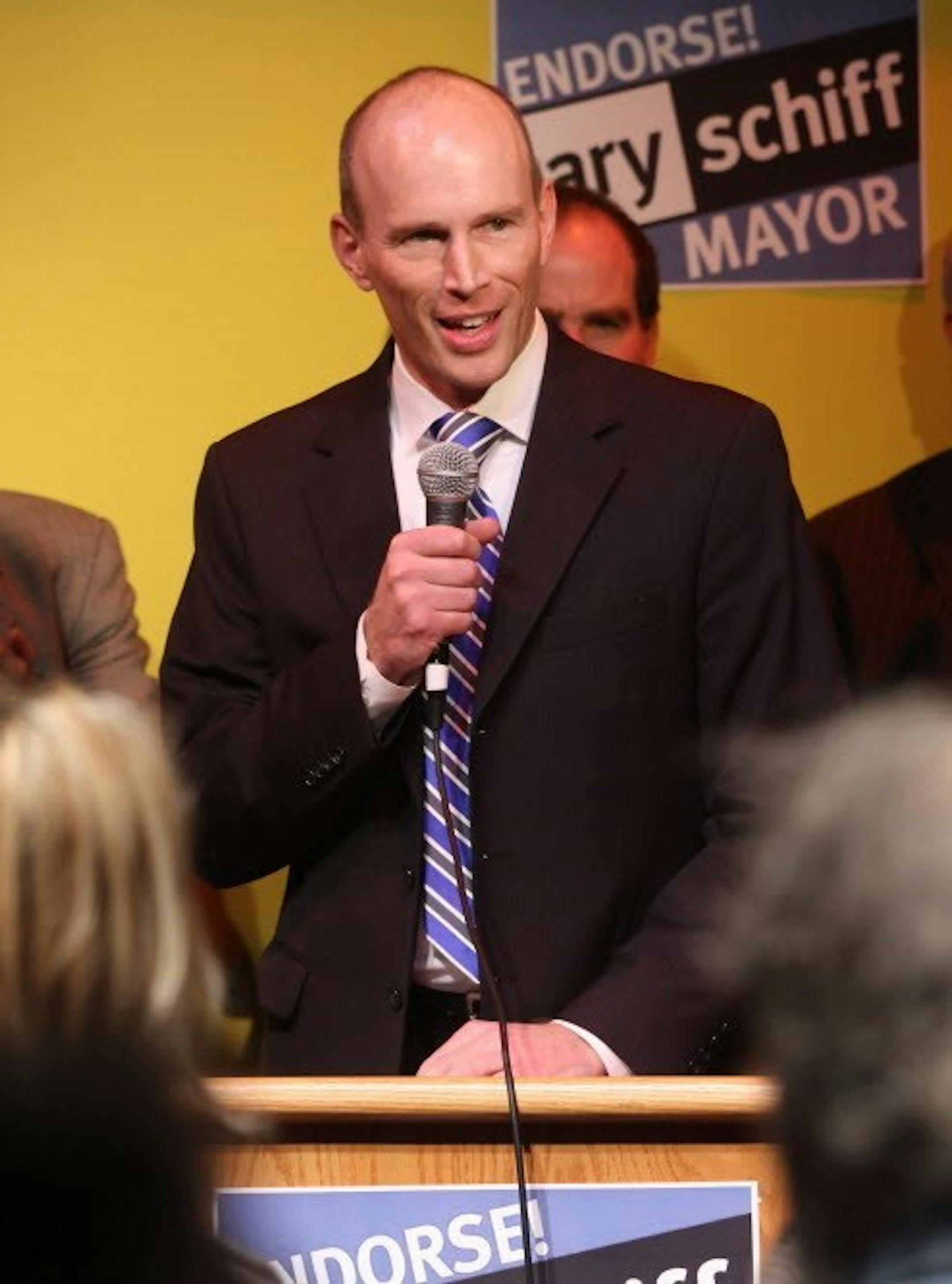 Photo: Schiff announcing his mayoral bid this January (Bruce Bisping)