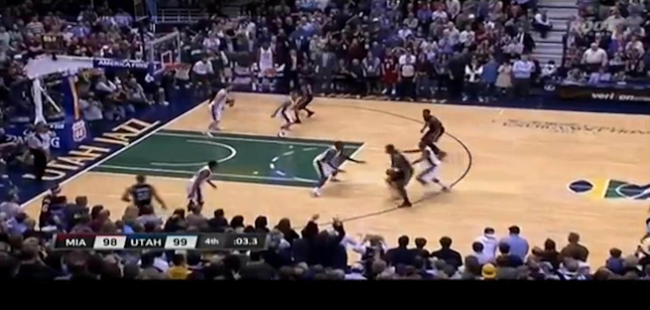 First screen grab (photo link to video): LeBron James passing out of a double-team Friday night against Utah instead of trying a game-winning shot. The Heat ended up losing when Udonis Haslem -- in the midst of an awful shooting season -- bricked a shot.