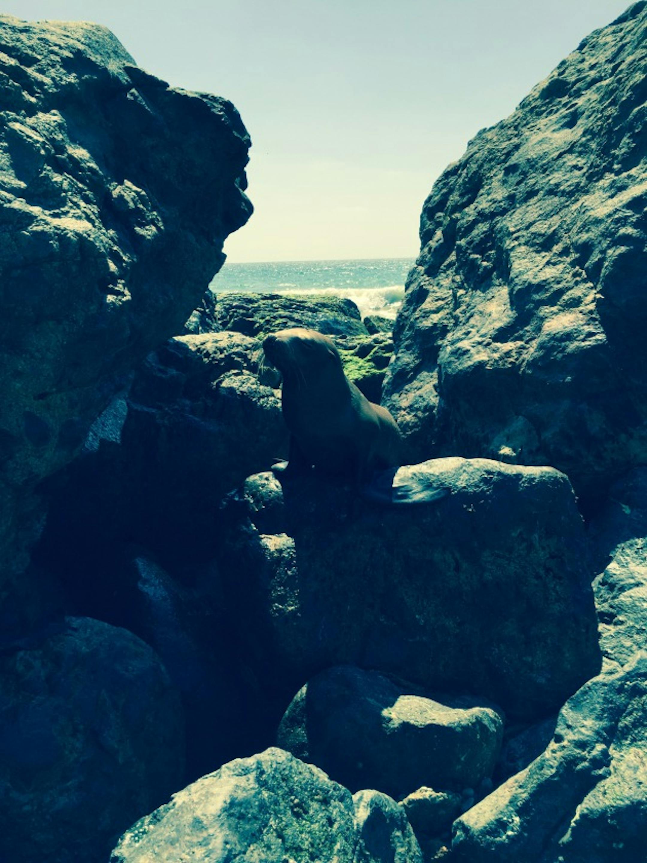 We were at Point Dume in Malibu, where we'd just finished a hike around the cliffs of this western tip of land that stretches into the Pacific. Back down on the sand, wind whipped, waves crashing and at the tumble of rocks splashed with salt water, my daughter declared: "Seal!"