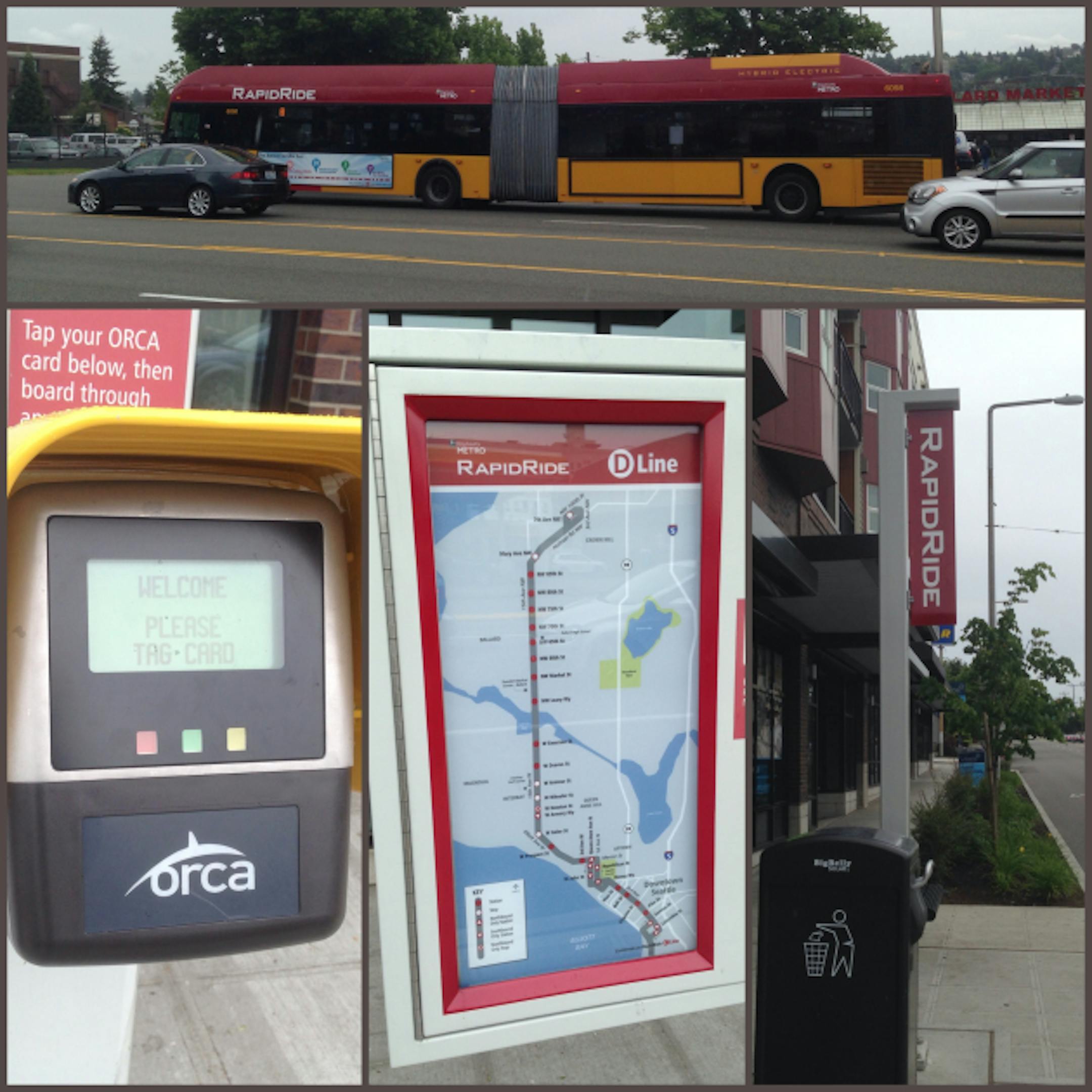 But in the last several years Seattle's King Country Metro Transit has also begun to roll out RapidRide. The series of enhanced bus lines boast 10-minute frequencies during peak hours, traffic signal priority, onboard wi-fi, real-time arrival information at stops, more space between stops and pre-boarding payment systems (right).