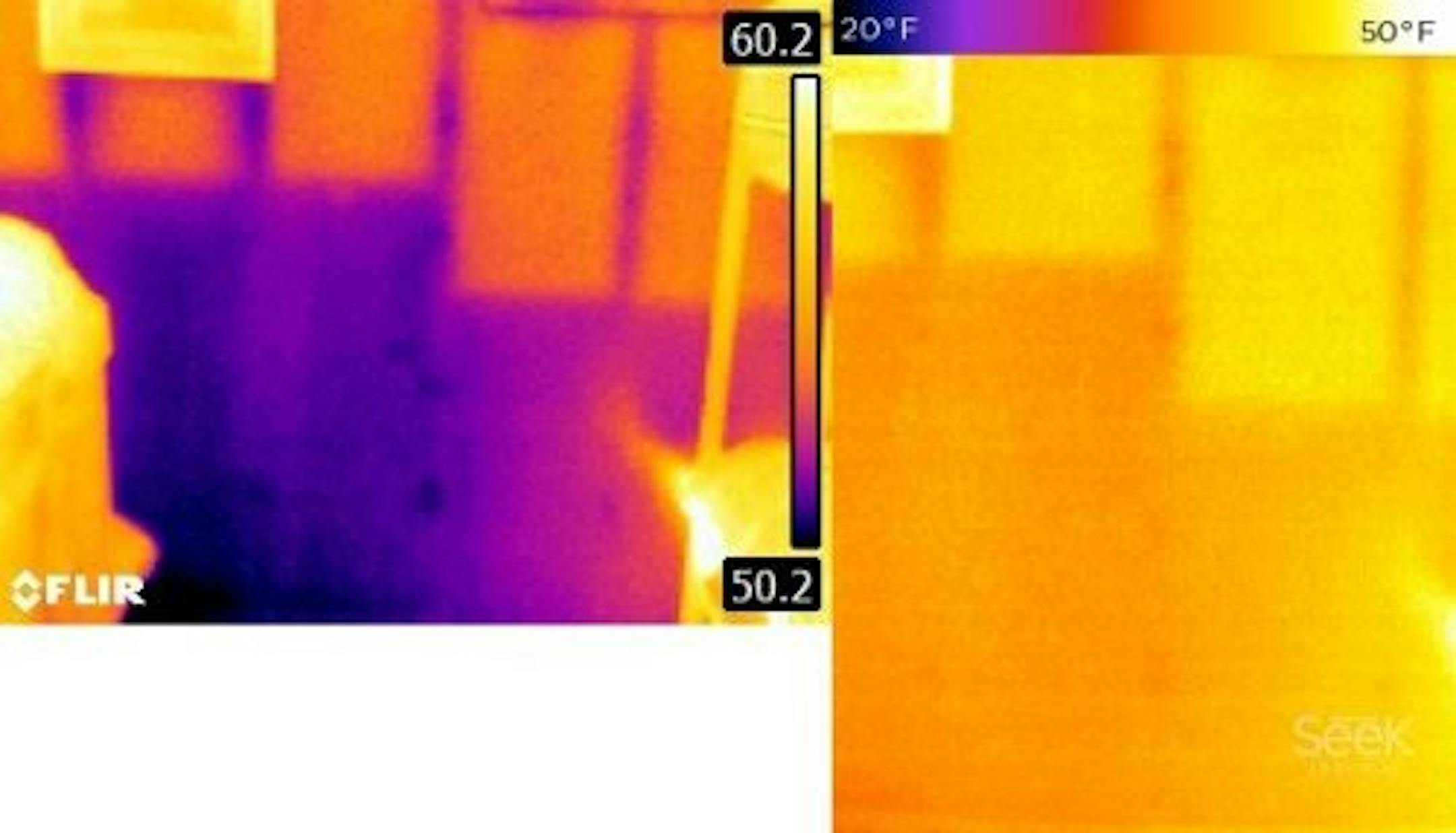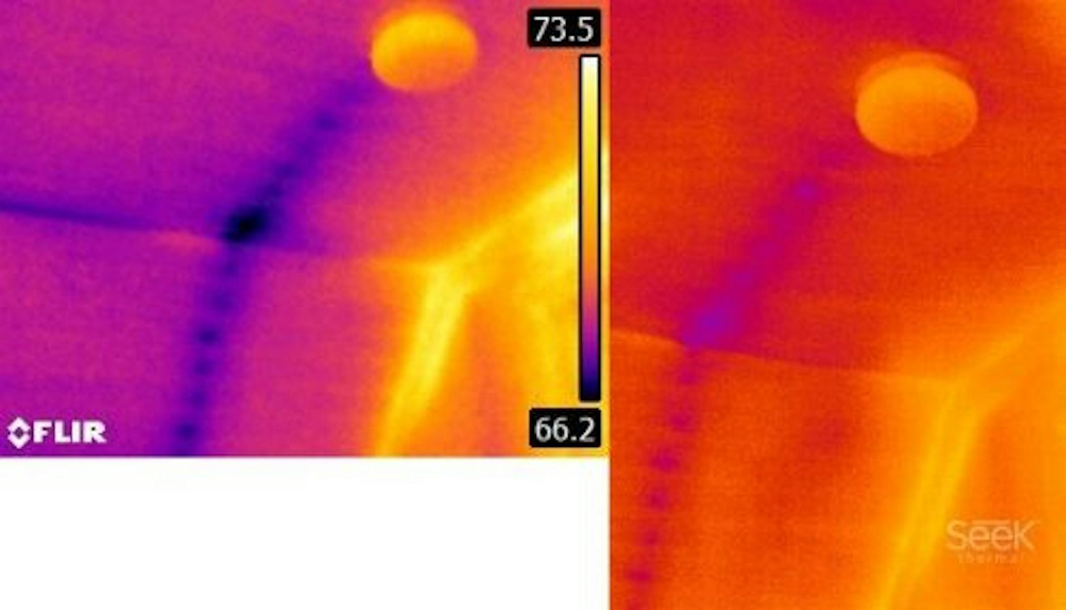 This camera has an impressive resolution of 320x240, which is four times the resolution of my FLIR E6 (160x120). I'm thinking it should probably be called 240x320 because the screen is taller than it is wide, but whatever. You get it. For comparison, FLIR's pocket-sized C3 thermal camera has a resolution of only 80x60, giving the Reveal Pro a huge advantage in the image quality department.