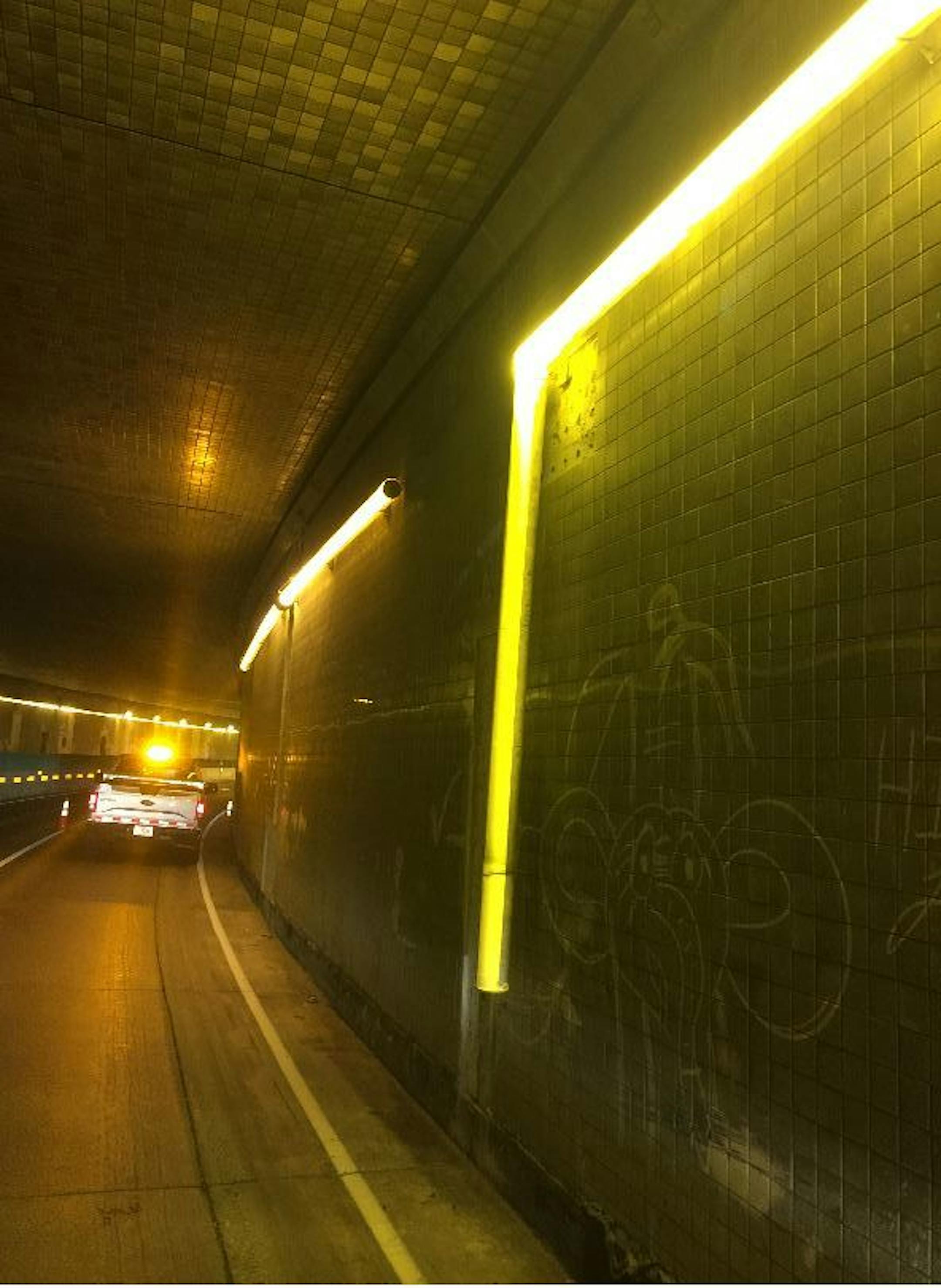 Big vehicles have been banned from driving through the tunnel since Sunday, when the Minnesota Department of Transportation reconfigured the lanes inside the tube by putting all traffic on one side and slimming traffic lanes to 10 feet wide. Yet, a few trucks an hour have passed through, said David Aeikens, a MnDOT spokesman.