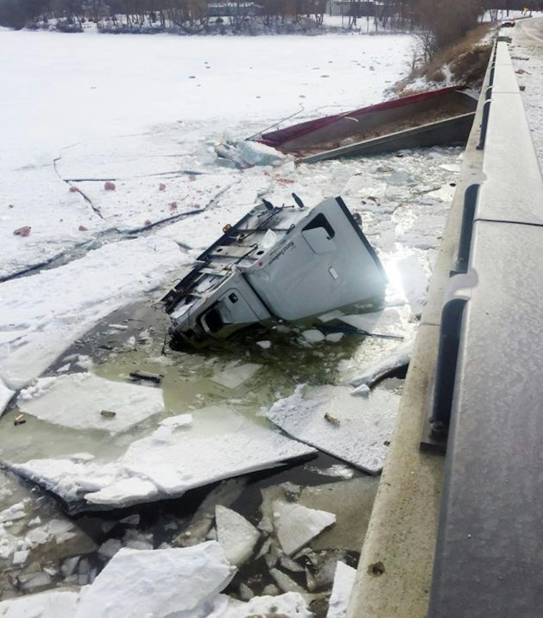 The 2013 Peterbilt Tractor was carrying animal parts when it veered to the right as it crossed the bridge north of Sauk Centre. It was not immediately clear what caused the crash, said Sgt. Jesse Grabow.