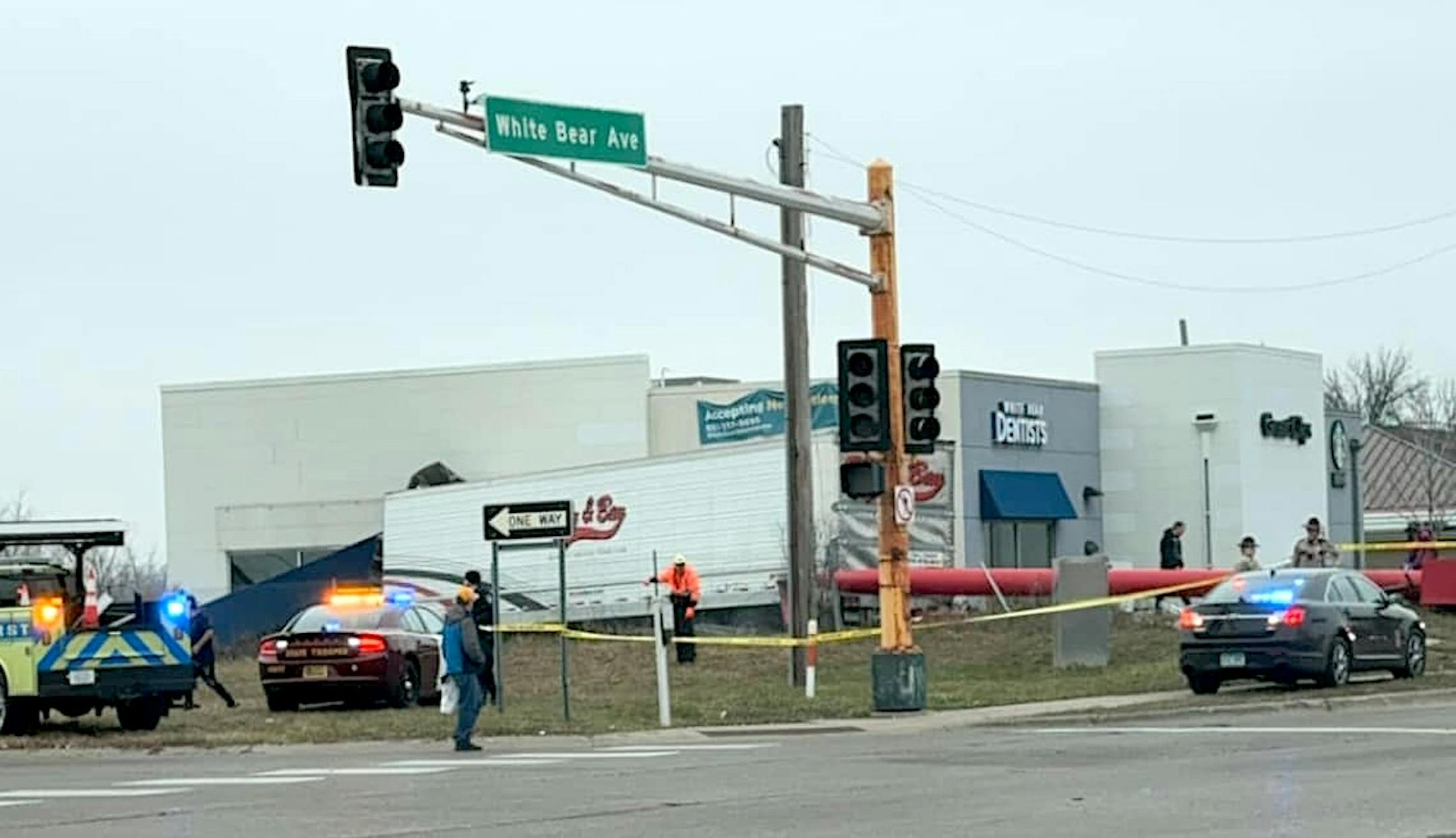Police said the semi-truck took the exit ramp off I-694 westbound, crossed all lanes of White Bear Avenue and then crashed into the building at the northwest corner of the intersection.