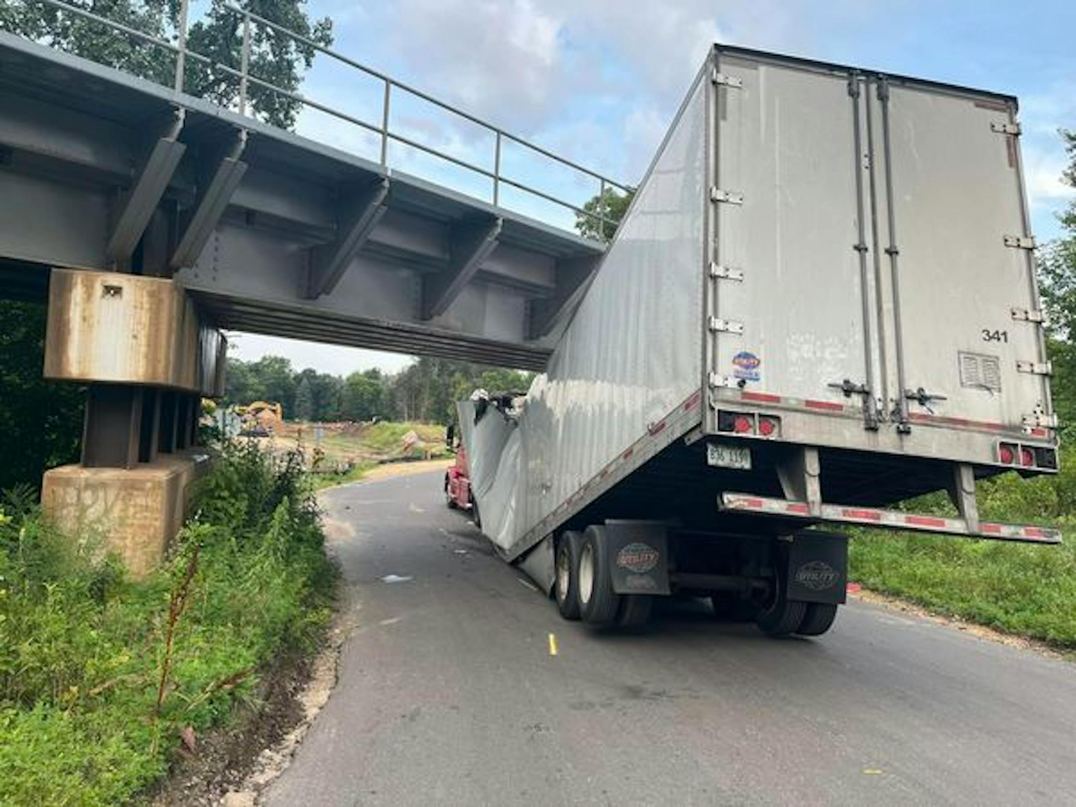 A lost truck driver’s rig got in a jam Tuesday in Cottage Grove as the driver attempted to pass under a low bridge.