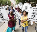 They chanted that workers were understaffed, underpaid and working under an unfair contract. The strike will affect about 900 workers on the campus.