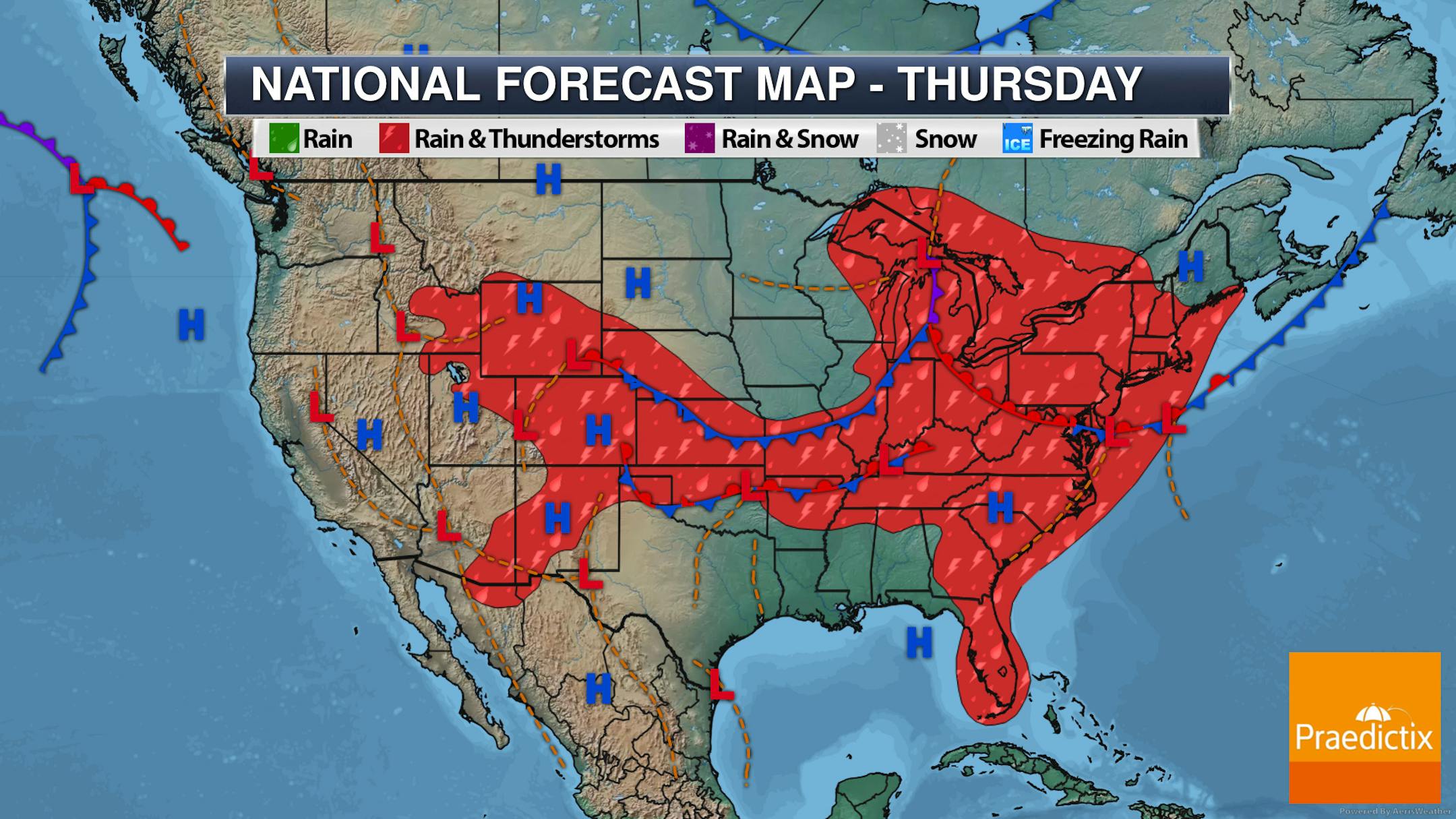 Forecast loop from 5 PM Wednesday to Midnight Wednesday Night.
