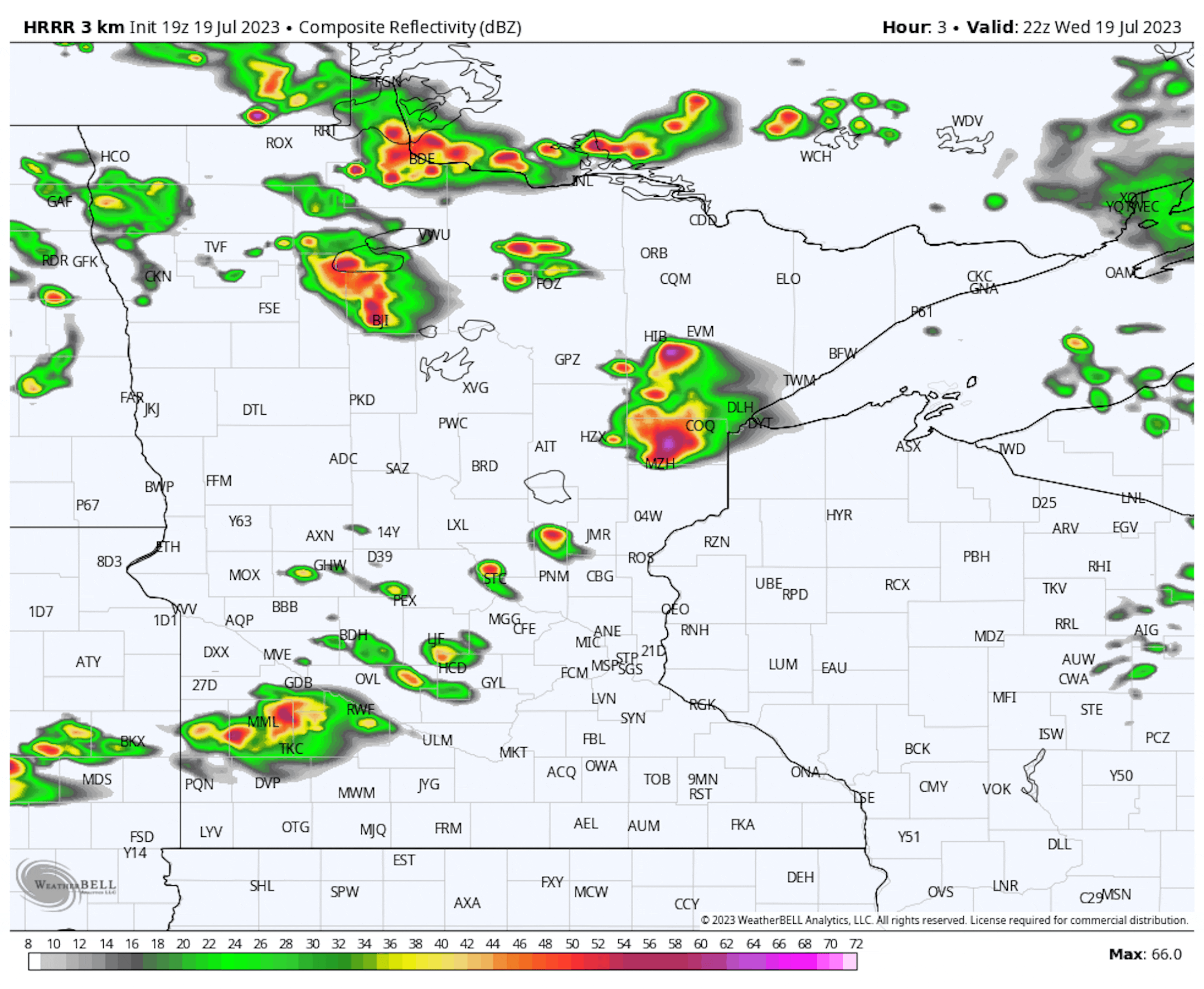 We are watching a cold front sliding across the state Wednesday, which is leading to some strong storms as we head through the late afternoon and evening hours. Already Wednesday afternoon (through about 4:10 PM), a tornado had been reported northeast of Tenstrike in northern Minnesota. There had also been 1.75" diameter hail reported in Saum, near Hendricks, and in Kelliher.