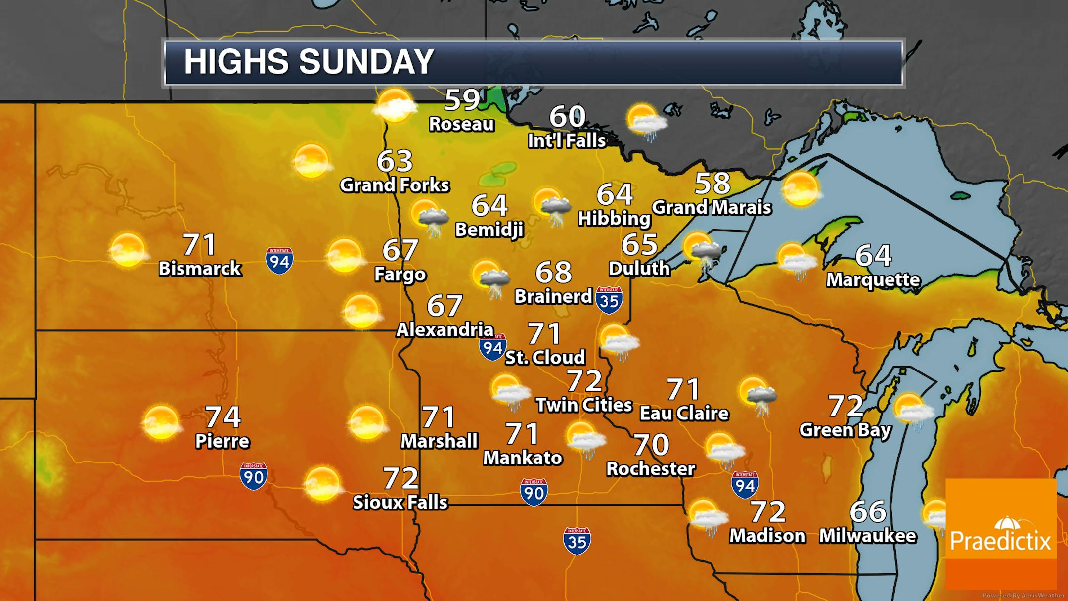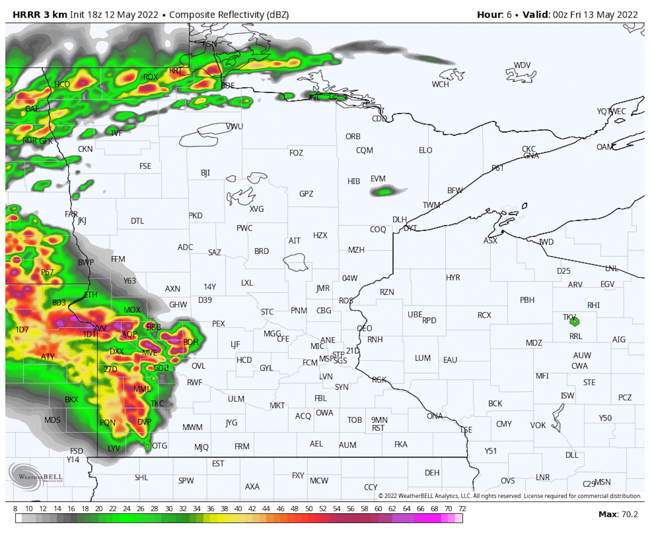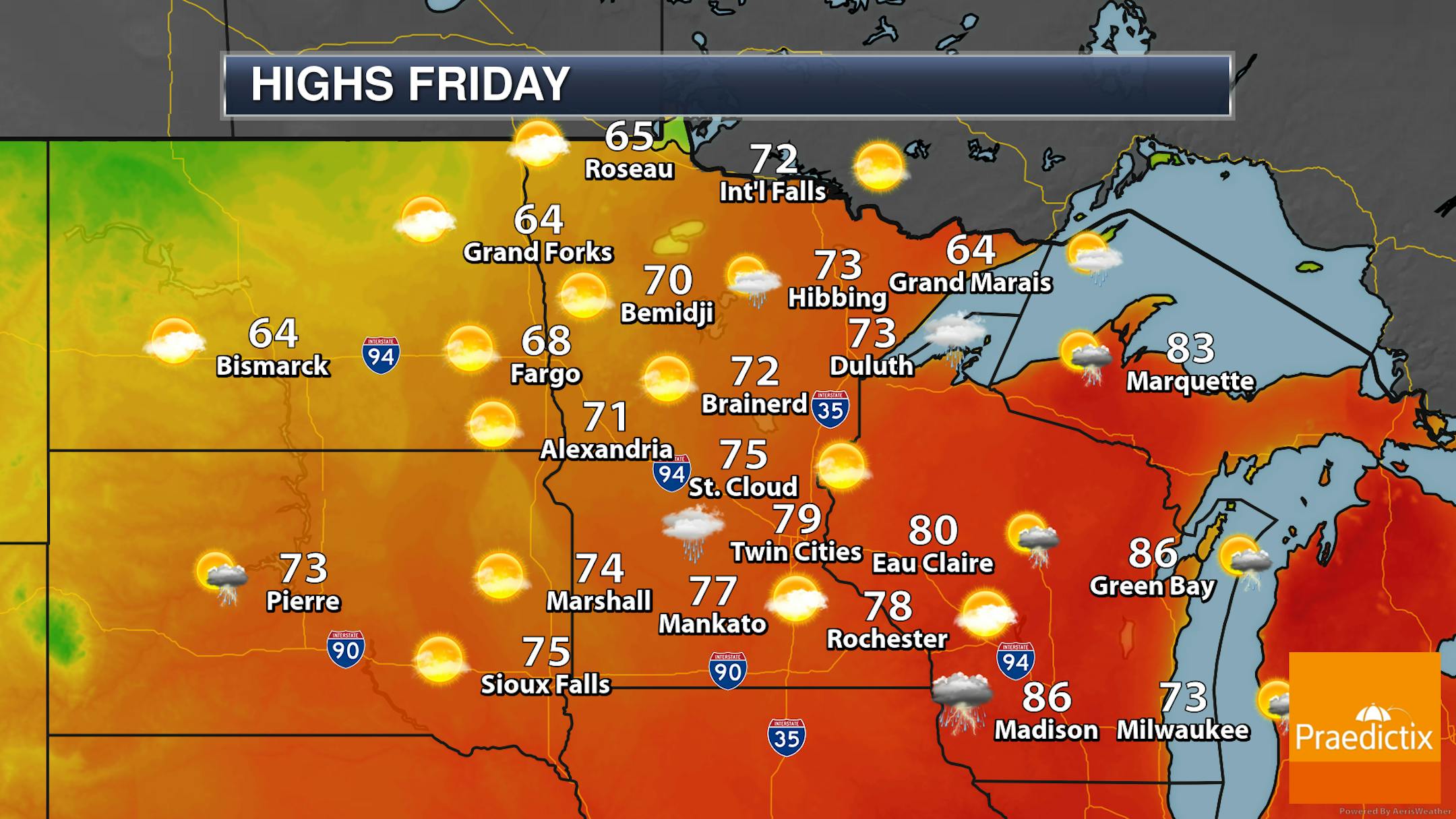 More rounds of strong to severe storms rumbled through the region as we went through Thursday. Above is a picture of quarter-sized hail from my brother Alex up in St. Cloud. Other areas in and around the St. Cloud region saw even larger hail, with 1.75"-2" hail reported (including the image in the tweet below).