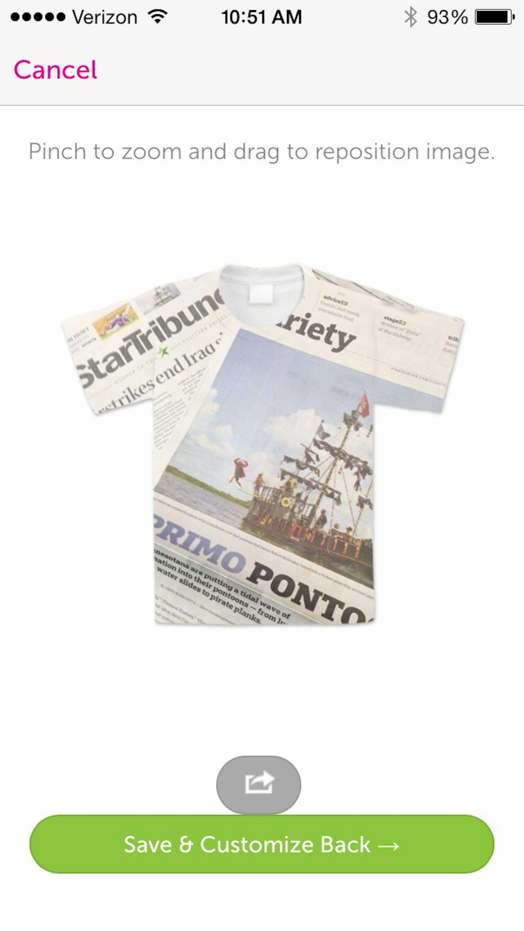 (Photo: Screen shot of a very quick attempt at making a SeeMe t-shirt, featuring the almost unbelievable pirate ship from my colleague Aimee Blanchette's story about fantastic pontoons.)