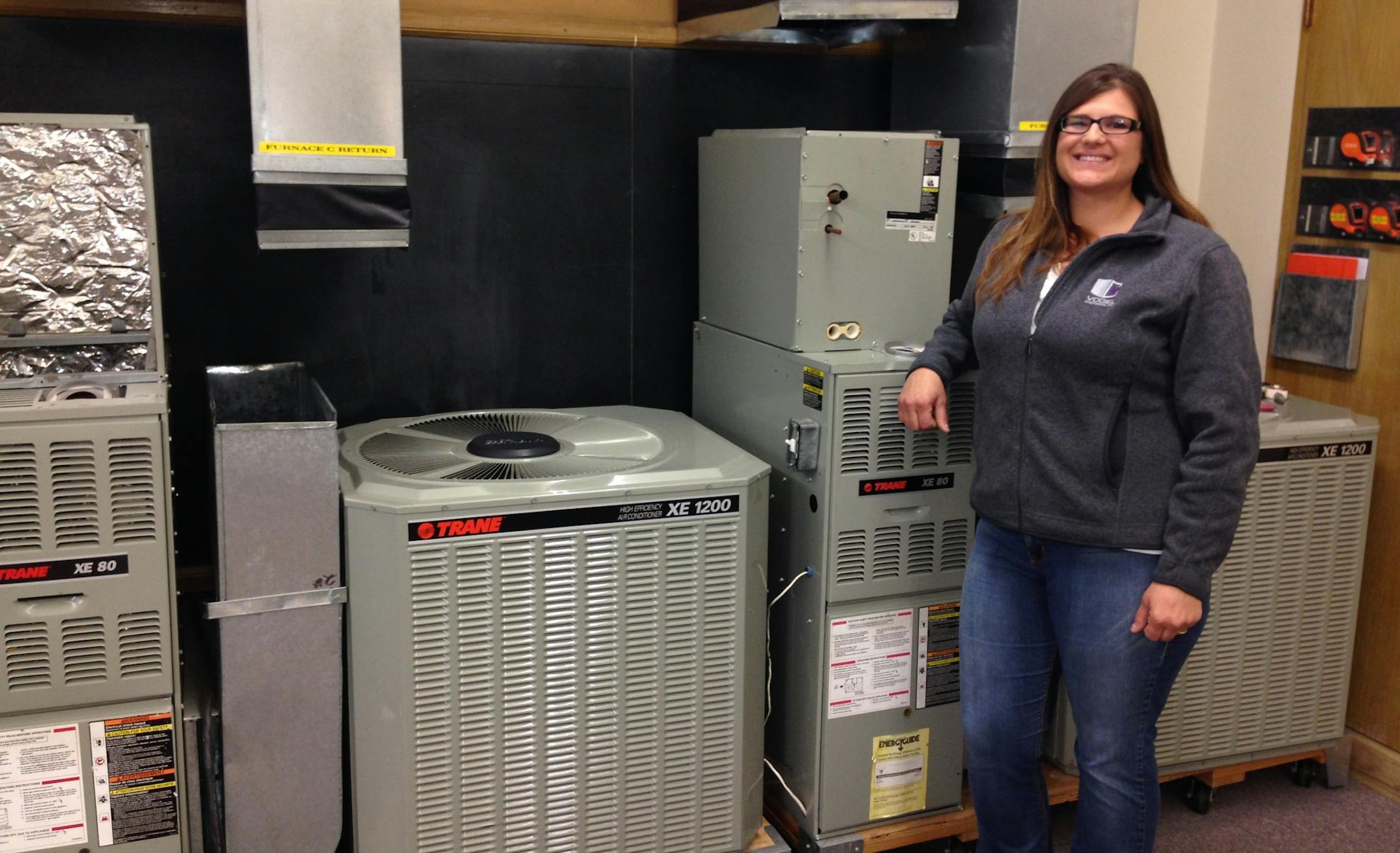 In the second year of her five-year apprenticeship, LeMire attends classes at the training center twice a month, and works full time at female-owned Vogel Sheet Metal. Her hourly wage is $22, but it's actually a $37-an-hour package, with retirement and health benefits.
