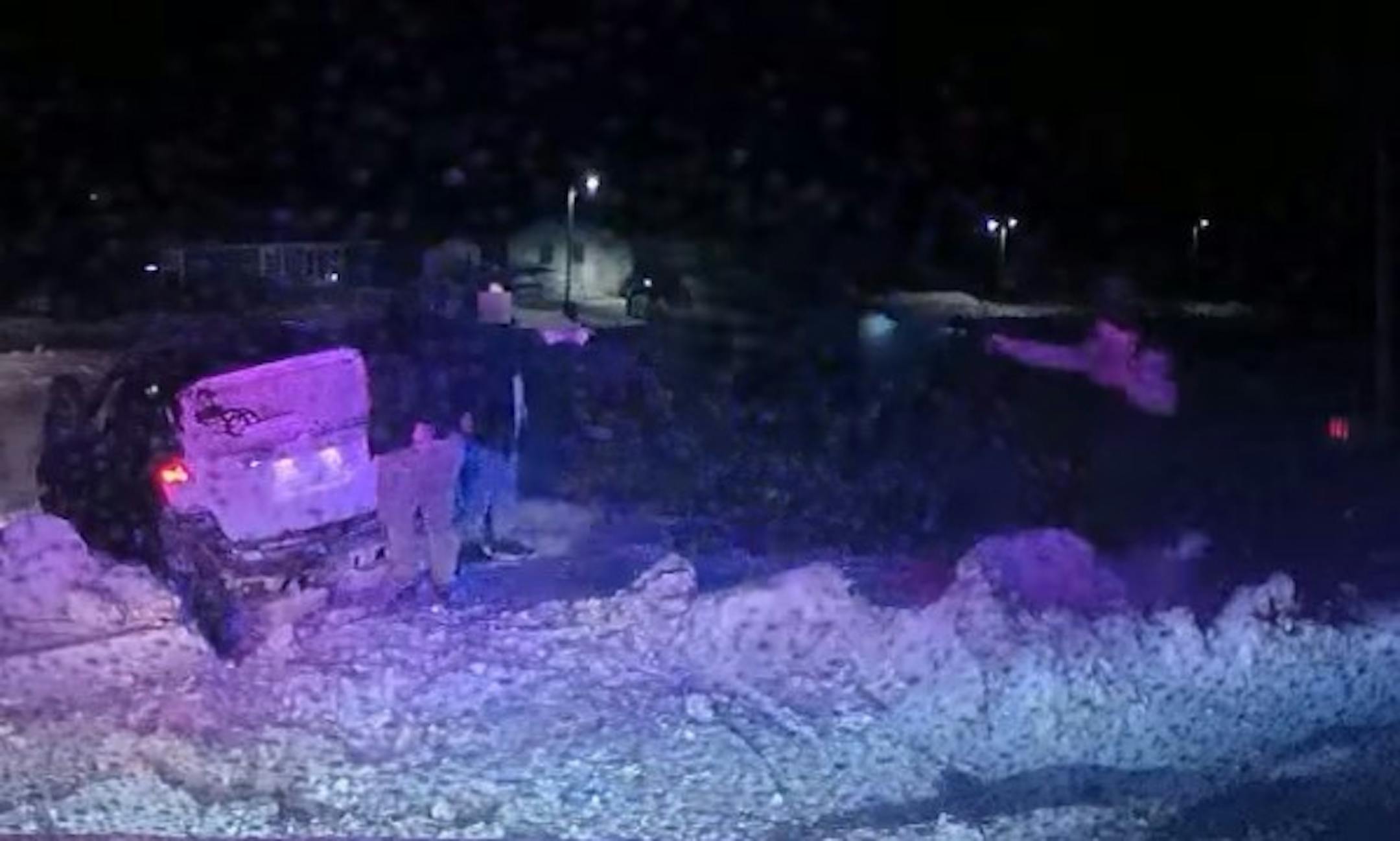The video shows Basswood turning and lifting what appears to be a gun and extending her arm towards Czerny as he shouts, "Drop the gun." The deputy then fires several shots and falls over a snow bank.