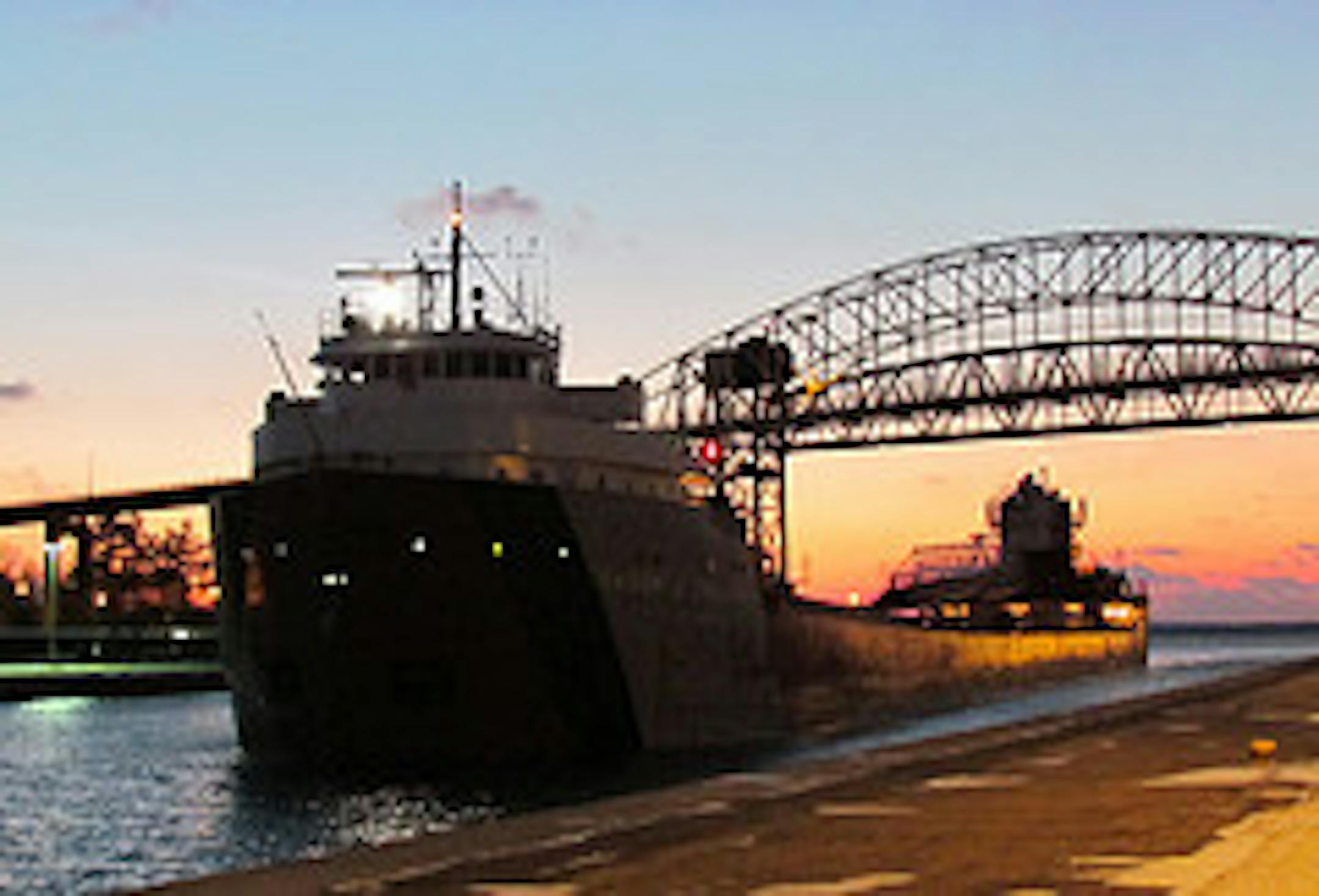 The 767-foot Cason J. Callaway (above), loaded with 25,000 tons of taconite pellets loaded at Two Harbors, Minn.,, passed through the Poe lock at Sault Ste. Marie, Mich. just after sundown Tuesday. It was headed for Indiana Harbor at the southern tip of Lake Michigan, south of Chicago, to deliver the iron ore, and then to Sturgeon Bay, Wis., where it will spend the winter. .