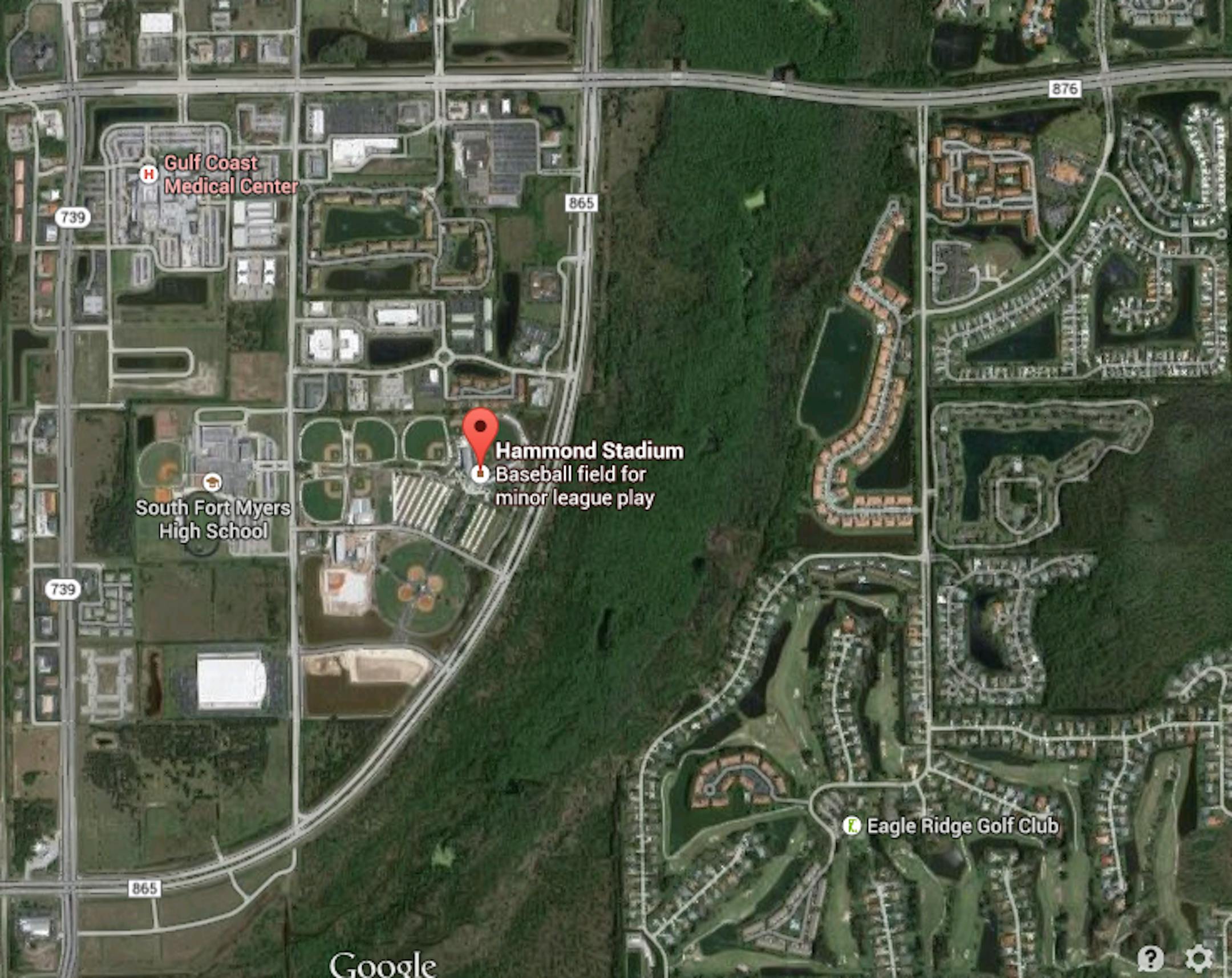 Hammond Stadium is a long drive from nearly everywhere. You'll find yourself dodging "Florida Drivers" along the five lane stroad until you hit the Little League fields. A volunteer will take your $10 and instruct you which field to park on (important tangent, it is oddly exciting to drive and park on a baseball field). Then you've got a long walk through another parking lot. The view is good, in so much as you don't look left or right.