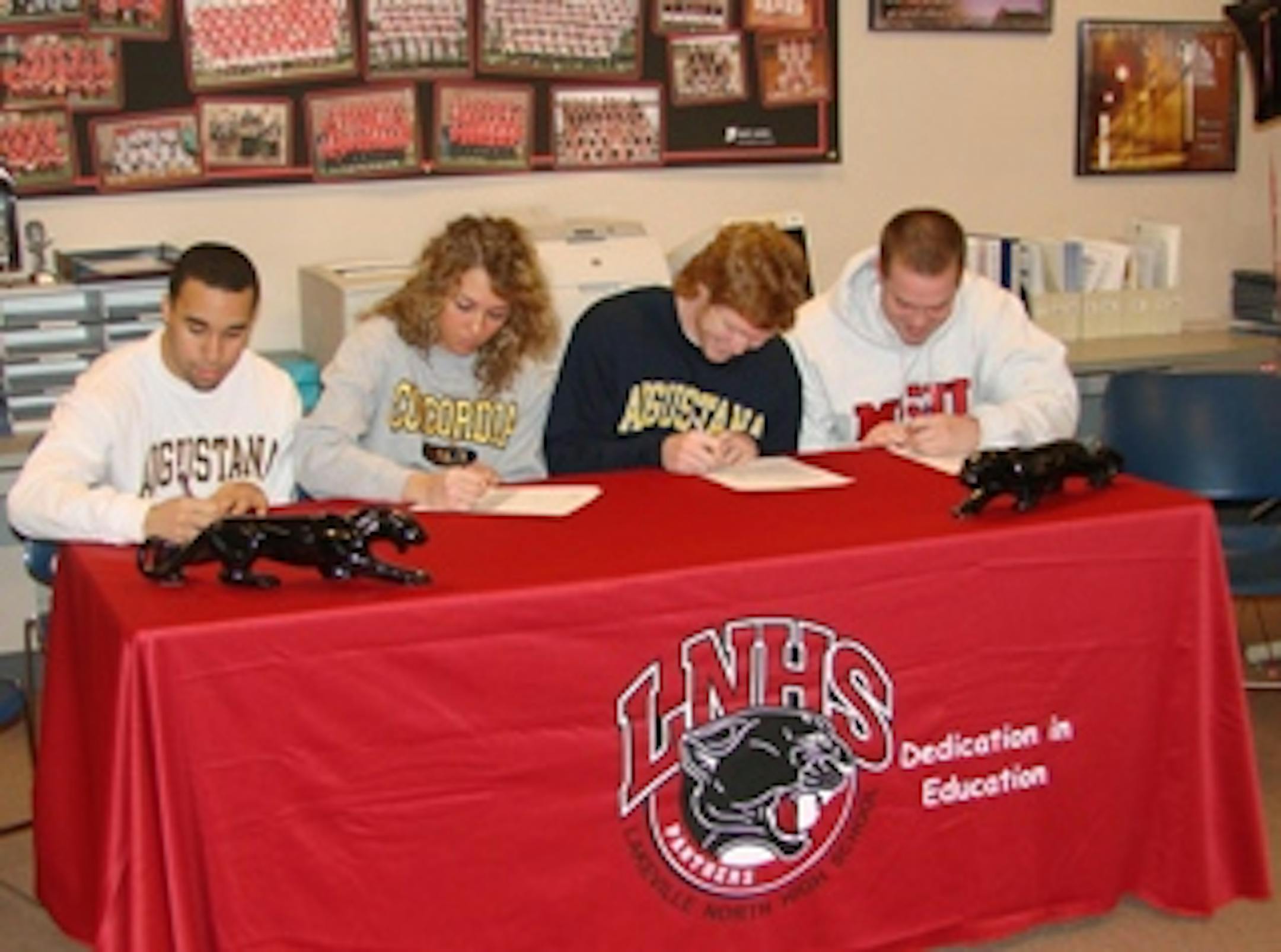 Signing day photos continue to roll in ... here are the four student-athletes from Lakeville North who signed National Letters of Intent today. From left-to-right: