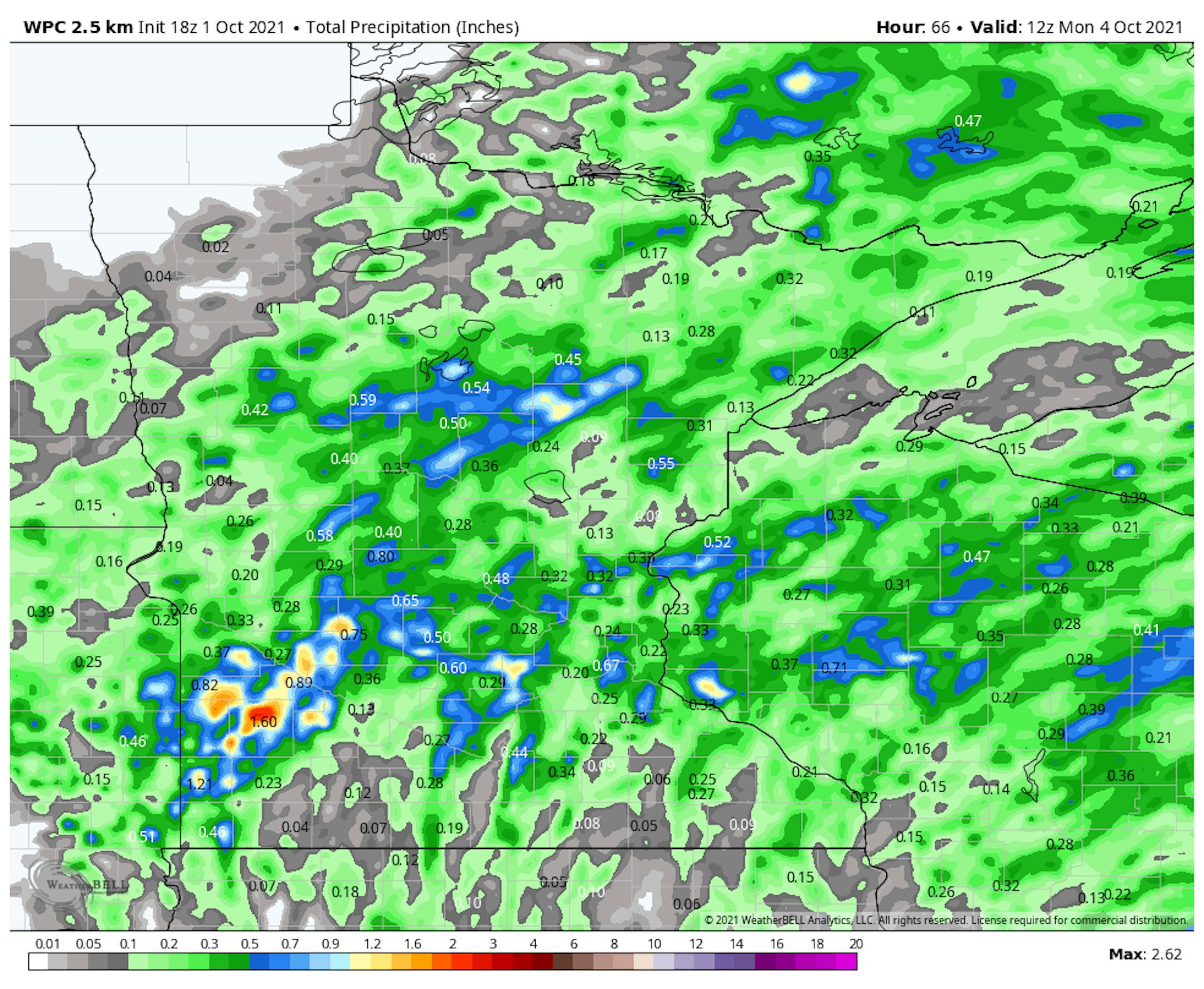 Rainfall amounts across the through through the weekend ahead looks heavy in a few spots, but it will all be dependent on where the storms develop. Some spots could see up to 1" of rain.