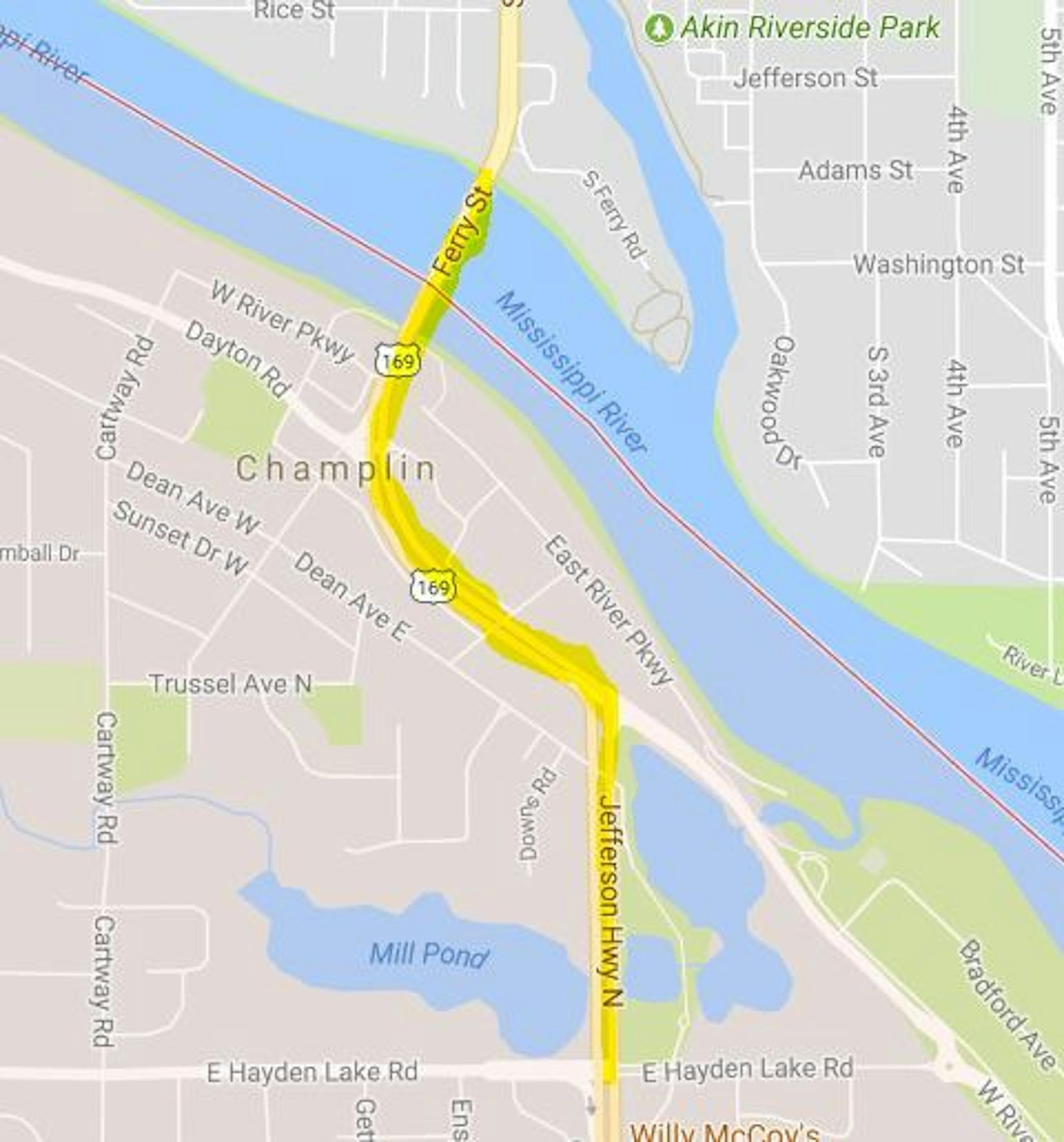 Starting at 6 a.m. Monday, the highway will be reduced to a single lane between the Mississippi River and Hwy. 610, and things will stay that way through September. That will make things tougher for commuters north of the Mississippi River as Hwy. 169 is one of the few routes with a bridge over river.