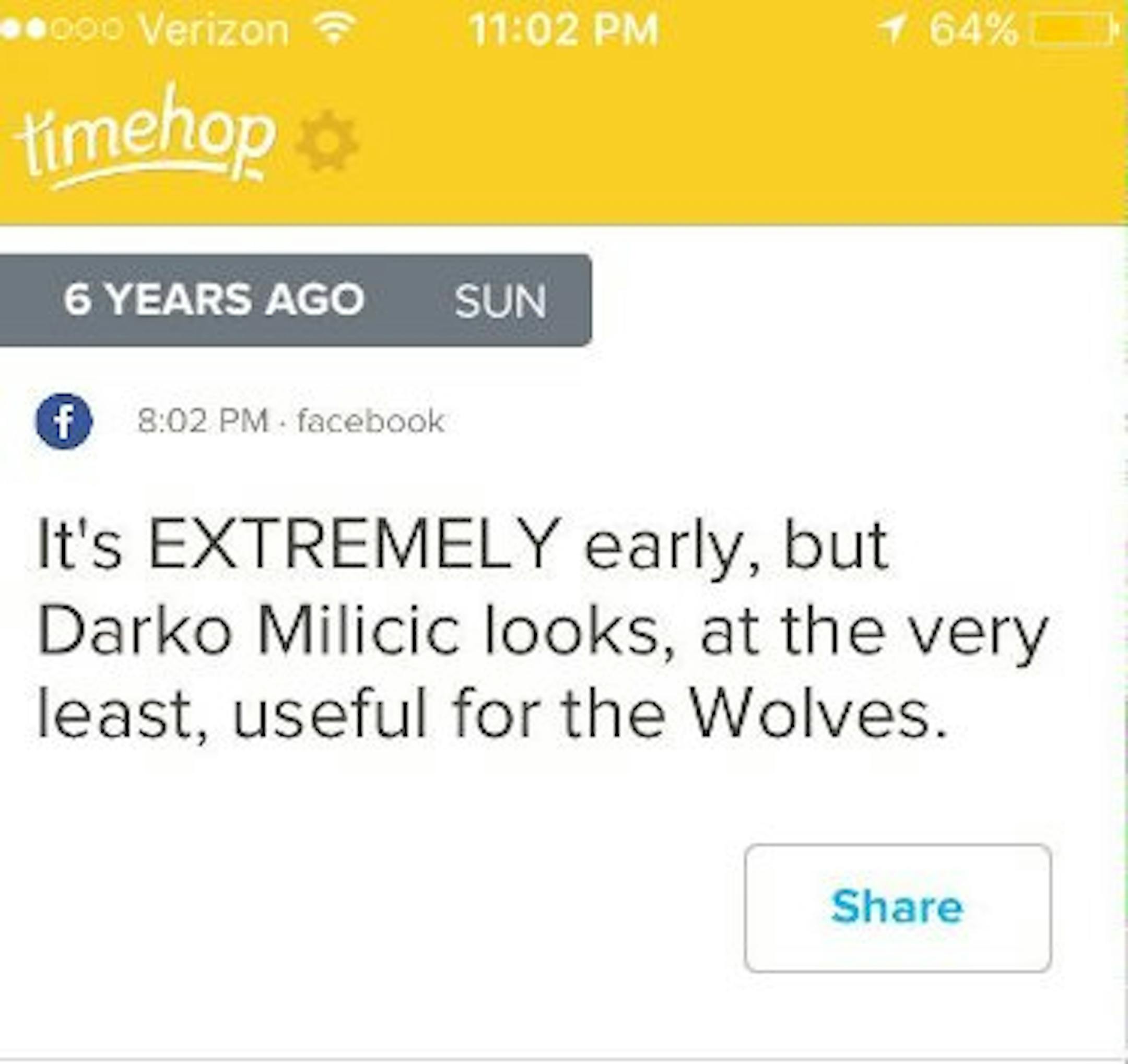 Such was the case Sunday night, when I got my daily alert from Timehop, an app that searches social media and delivers to you things you posted exactly 1, 2, 3 years ago, and so on.