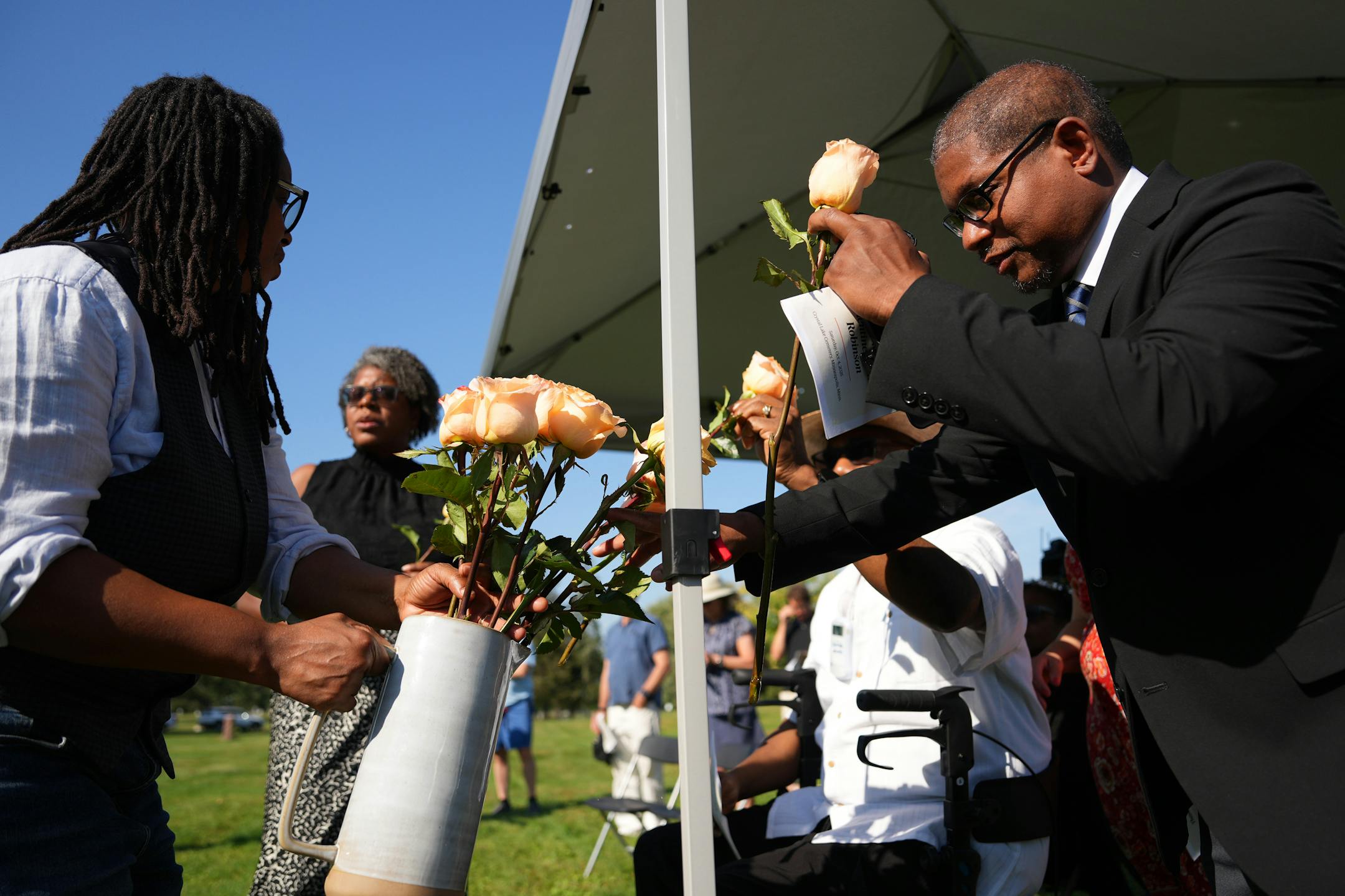 Dozens of people attended Saturday’s ceremony in Crystal Lake Cemetery, accompanied by the St. Peter’s AME Church choir singing the gospel hymn, “We’ll Understand it Better By and By.”