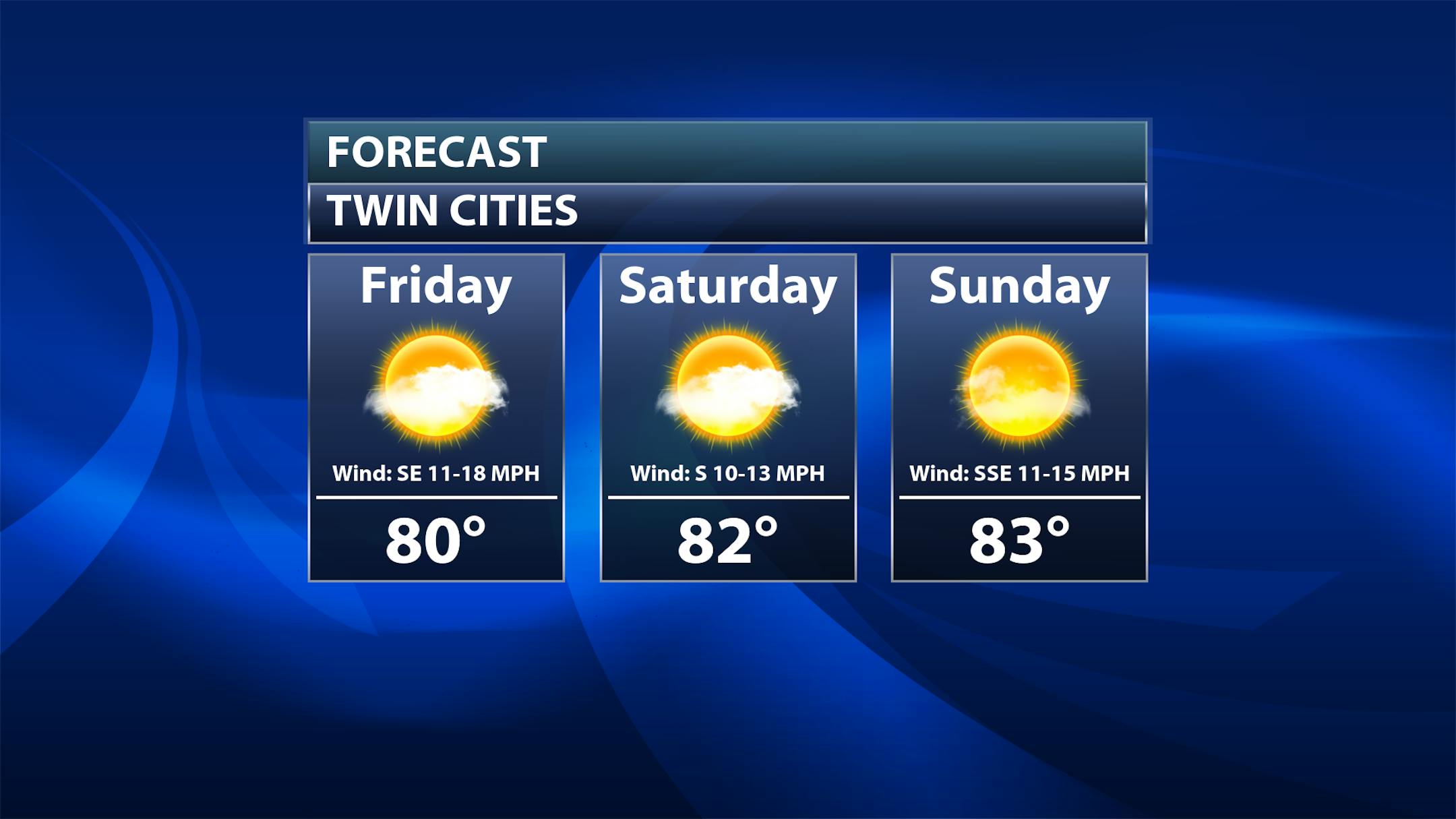Friday: While most of the day will feature mostly sunny skies, a few storms can't be ruled out in the afternoon and overnight hours. A few of the storms could be strong, especially from the northwest metro north and westward. Highs climb to around 80F (record high: 89F in 1897). Strong southeast winds gusting up to 30 mph are anticipated.