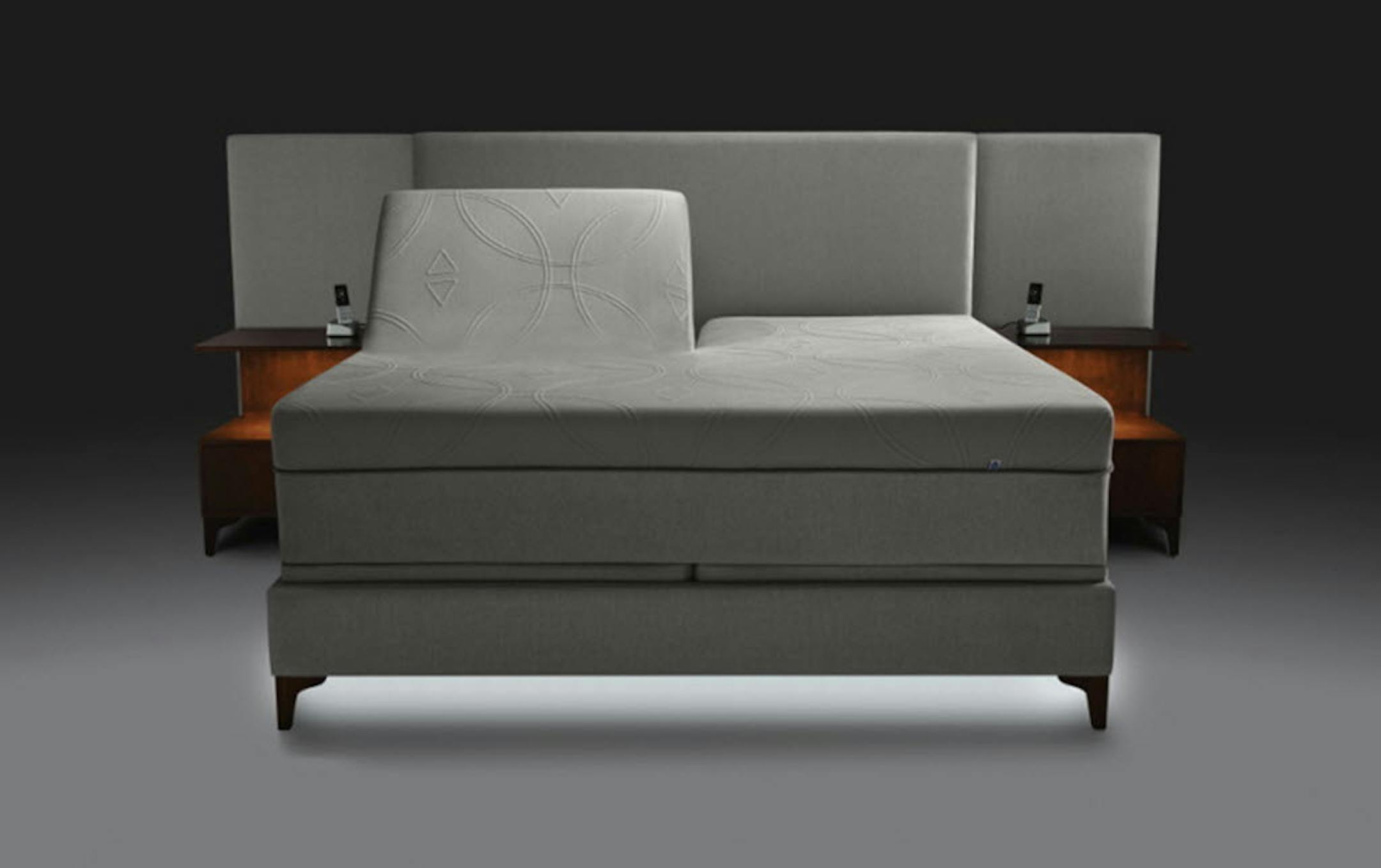 He and his wife can each position the bed however they are most comfortable, elevating it at the foot or the head. There's a motion-sensitve nightlight underneath. It tracks their heart rates, restlessness and total sleep time using a variety of sensors, sending all the info wirelesslessy to the Sleep IQ app.