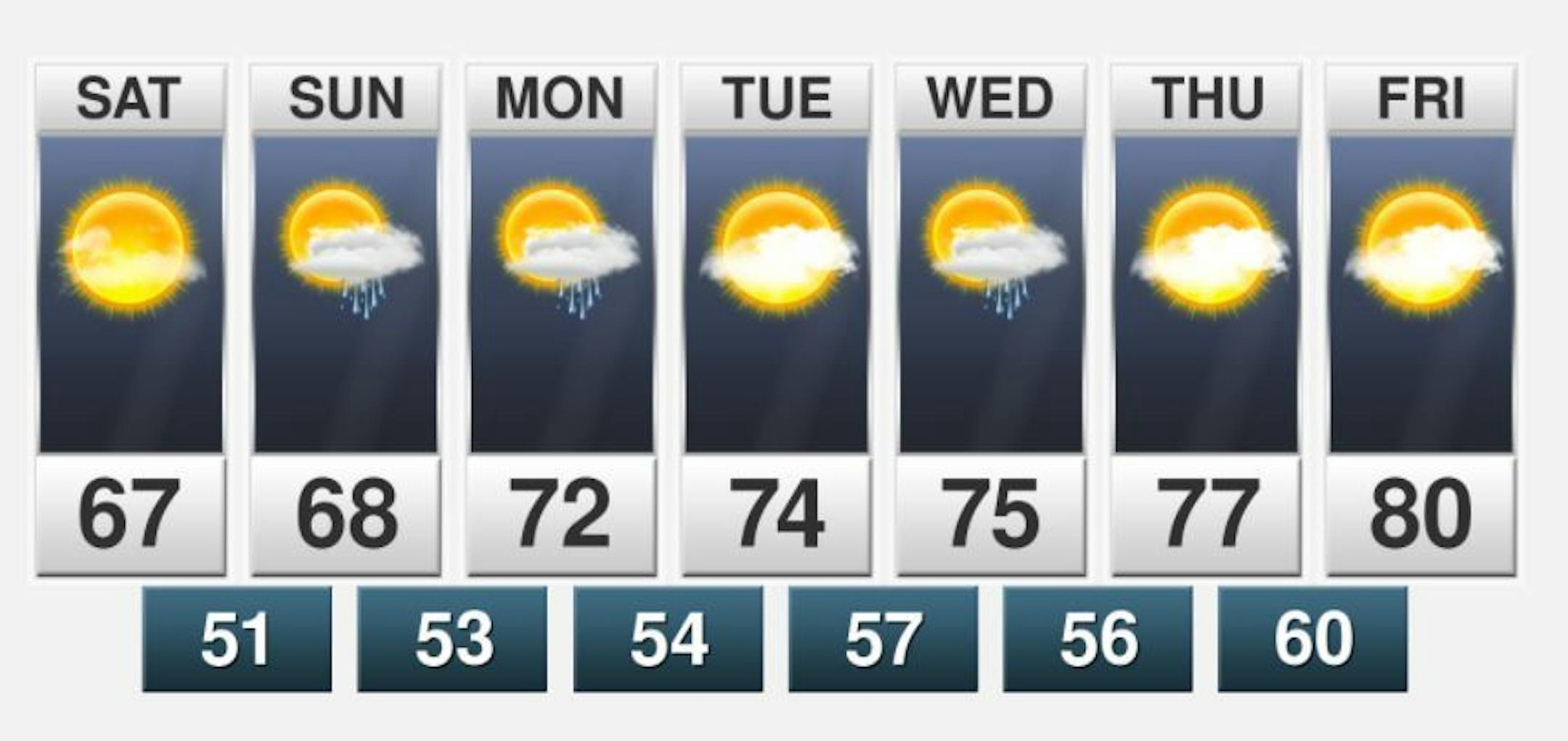 Here's the simulated radar from 7AM Saturday to 1AM Monday. Saturday will start on a dry and mostly sunny note with spotty showers/storms developing later in the day. The best chance of rain appears to be overnight Saturday into Sunday morning with another round of showers/storms developing PM Sunday.