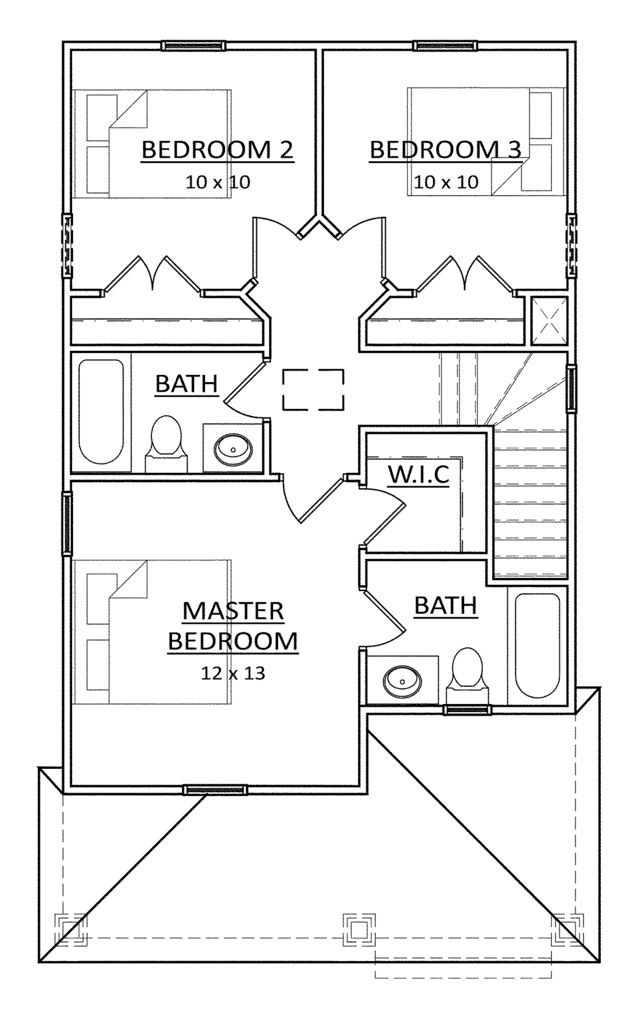 PLAN HOTW130032 • Total finished sq. ft.: 1,190 • Bed/bathrooms: 3 /3 • Stories: 2 • Foundation: Crawlspace