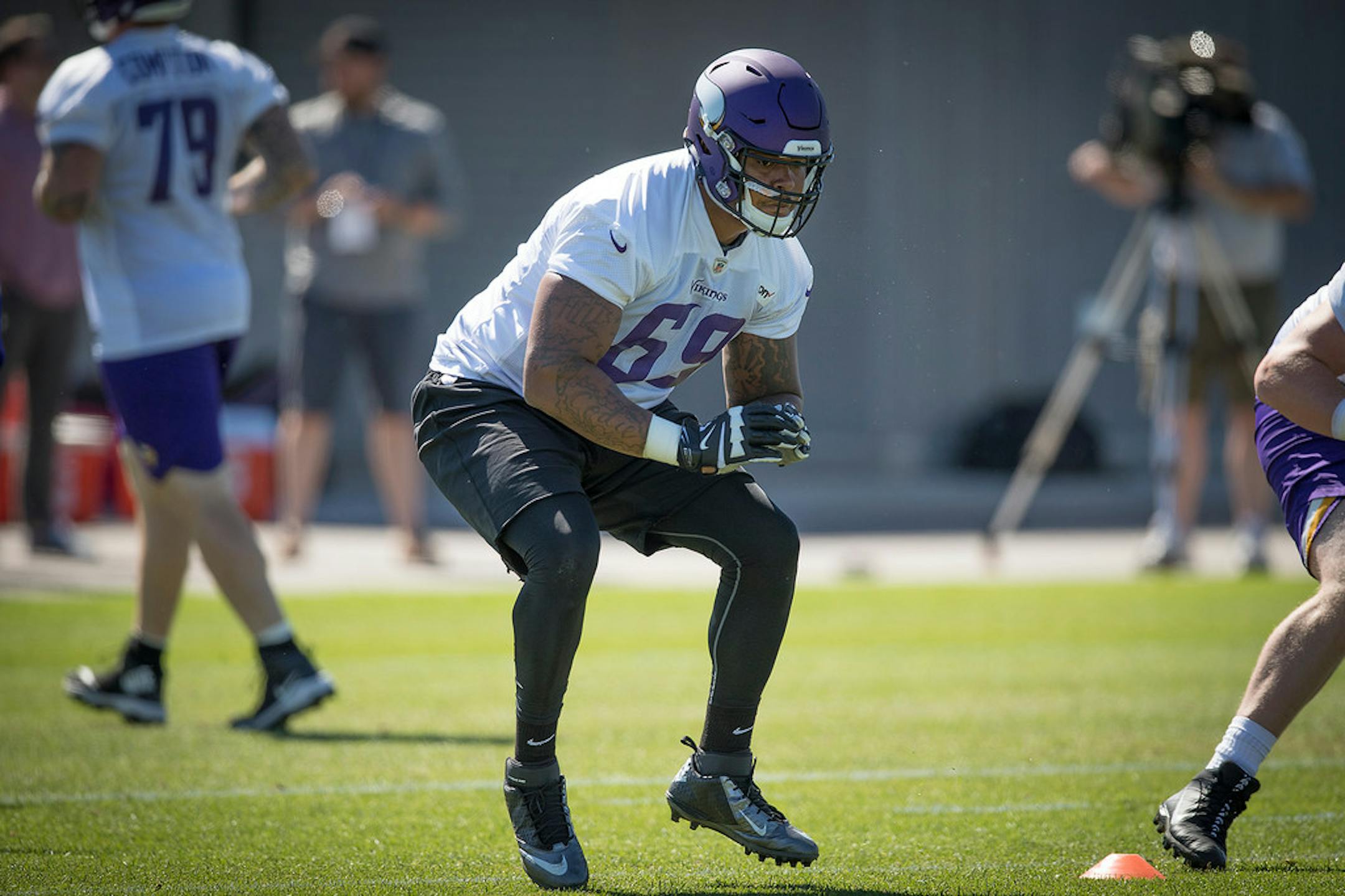 Rookie Brian O'Neill has been thrown into the mix with the first-team offensive line early in his first Vikings training camp, because starter Rashod Hill was limited due to an illness that has had him vomiting during practice.