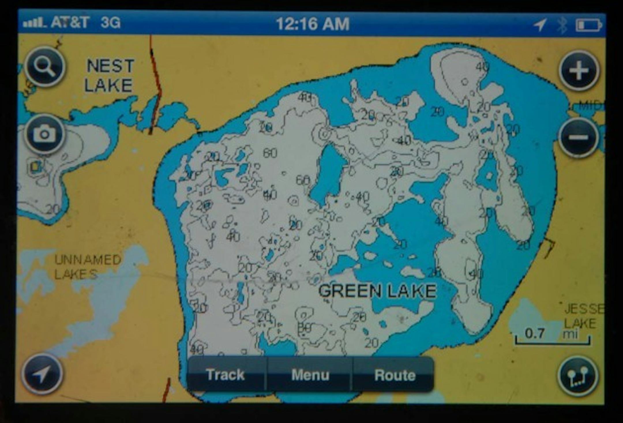 Owners of iPhones and other smart phones who fish can do a smart thing and download lake charts from Navionics (www.navionics.com). The charts are extremely detailed and, once downloaded, don't require a mobile signal to access. Paired with GPS, the application allows anglers and other boaters to navigate unfamiliar waters, showing in real time the boat's location and movement. Additionally, route tracking and planning are easy. Even if a boat is outfitted with a similar on-board unit with larger screen, the mobile application is a great backup.
