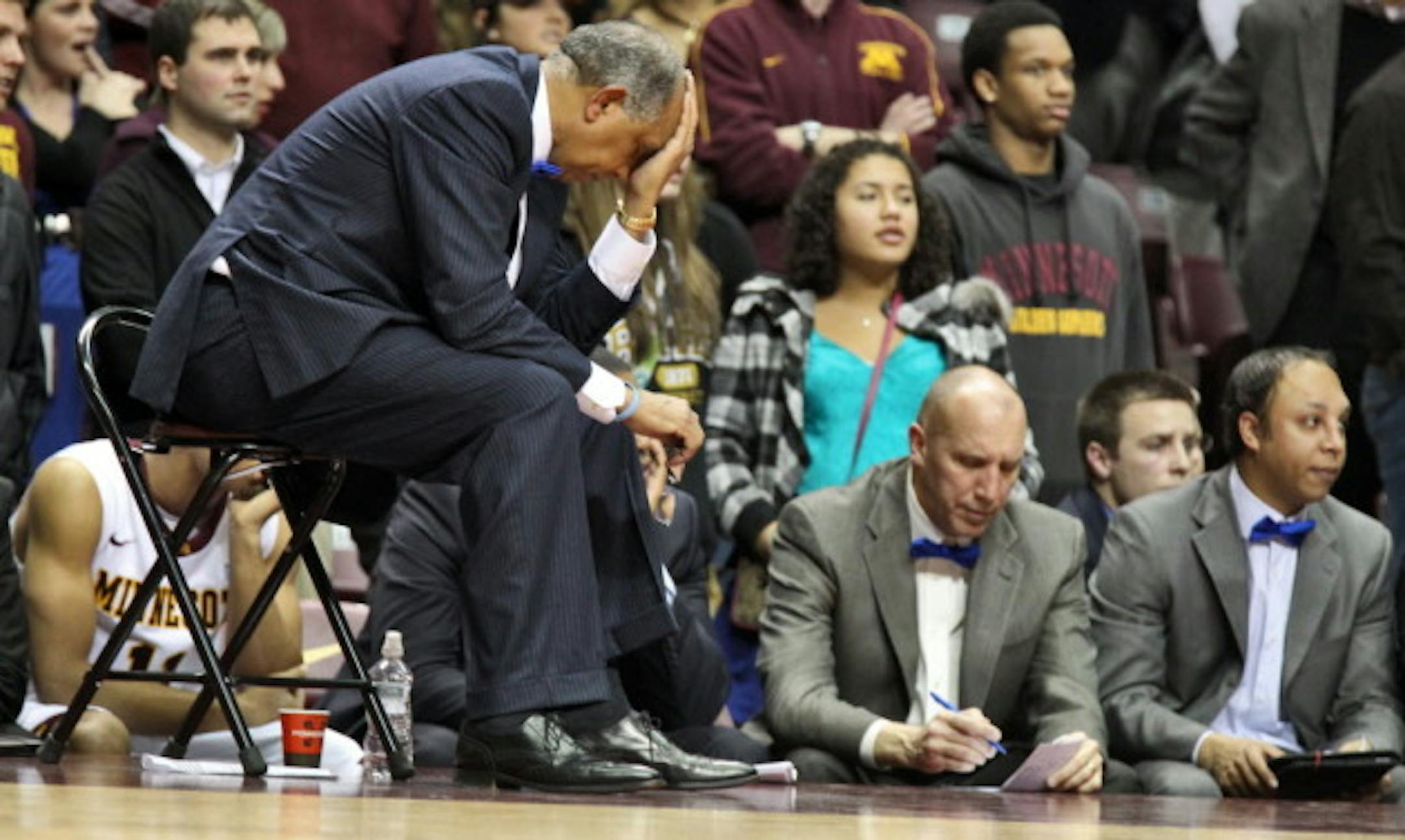 Tubby Smith on Sunday's game: "One of the worst performances we've had in a long time, especially here at home. We didn't do the job we needed to do – we didn't take care of the ball the way we needed to. Psychologically, we've got to find a way to get our kids back up. Certainly heading to Wisconsin will be a real test of our character."