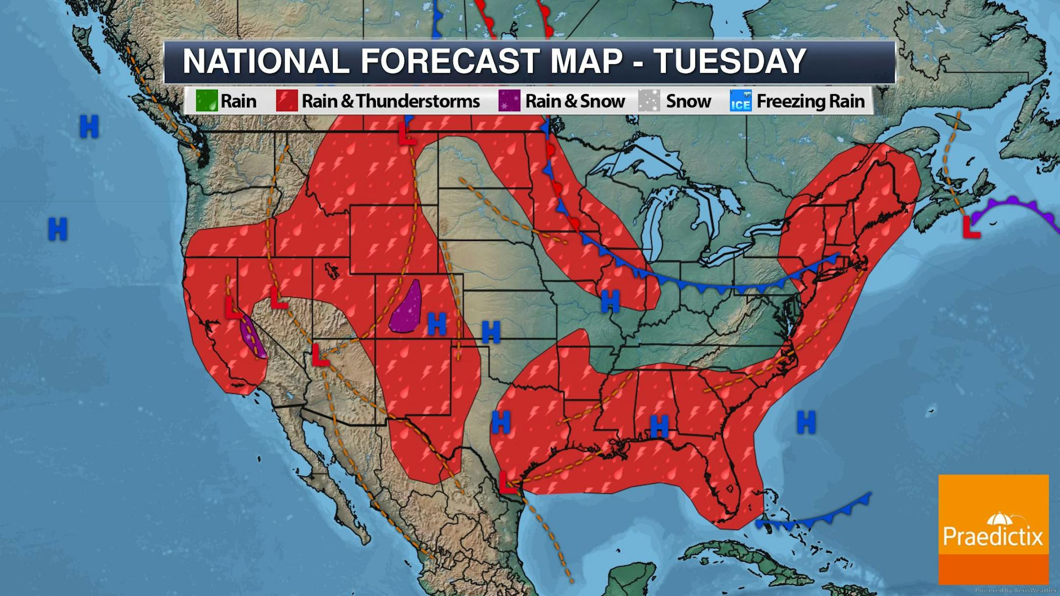 Here's the Weather outlook through Midday Wednesday, which shows spotty showers and storms developing across the Region on Tuesday & Wednesday. Some of the storms could produce locally heavy rainfall.