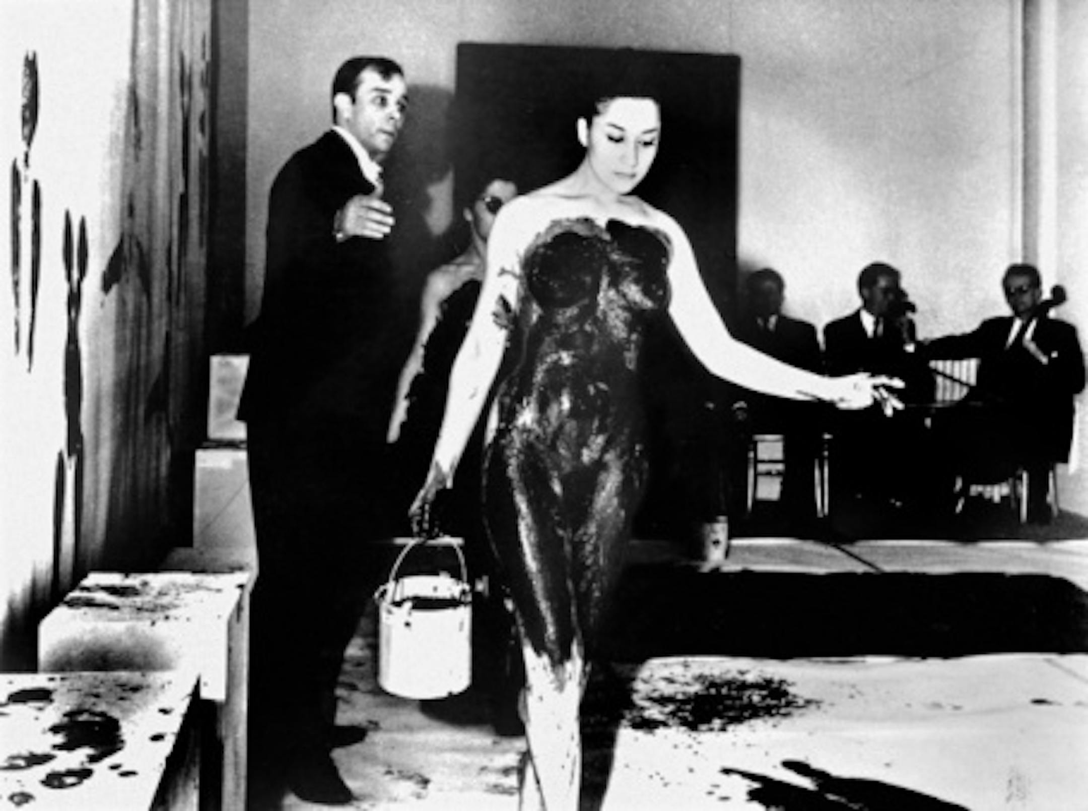 Yves Klein (1928-1962) creates a "live painting" in 1960, with a paint-covered nude model.