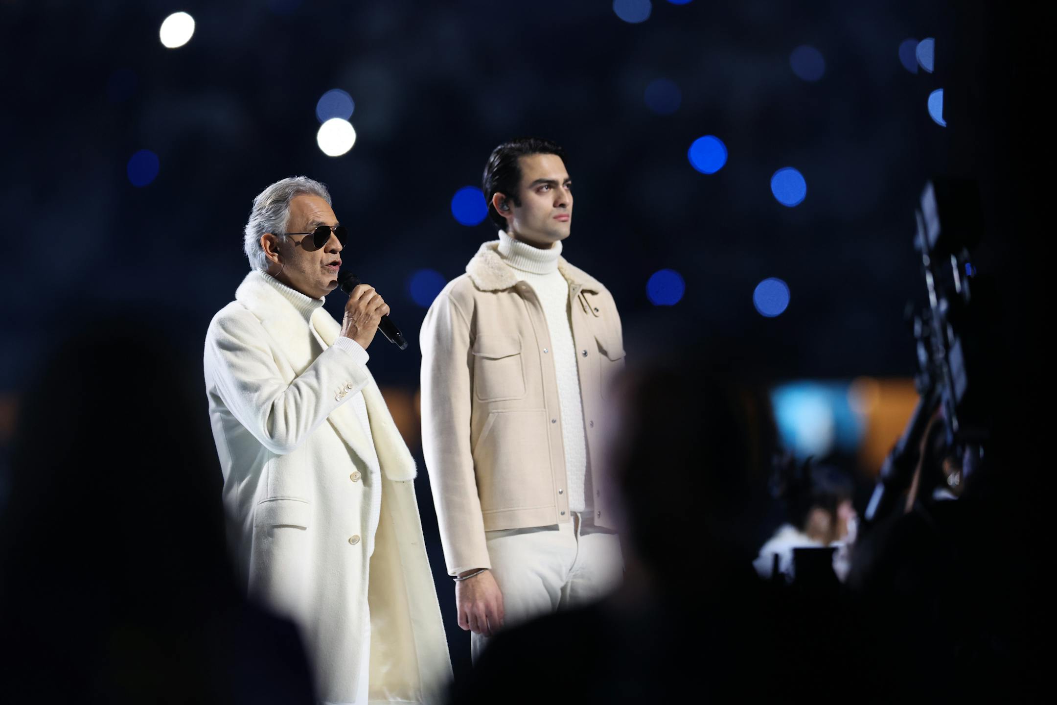 Andrea Bocelli and son Matteo, whose participation had not been revealed beforehand, dueted on “White Christmas.”
