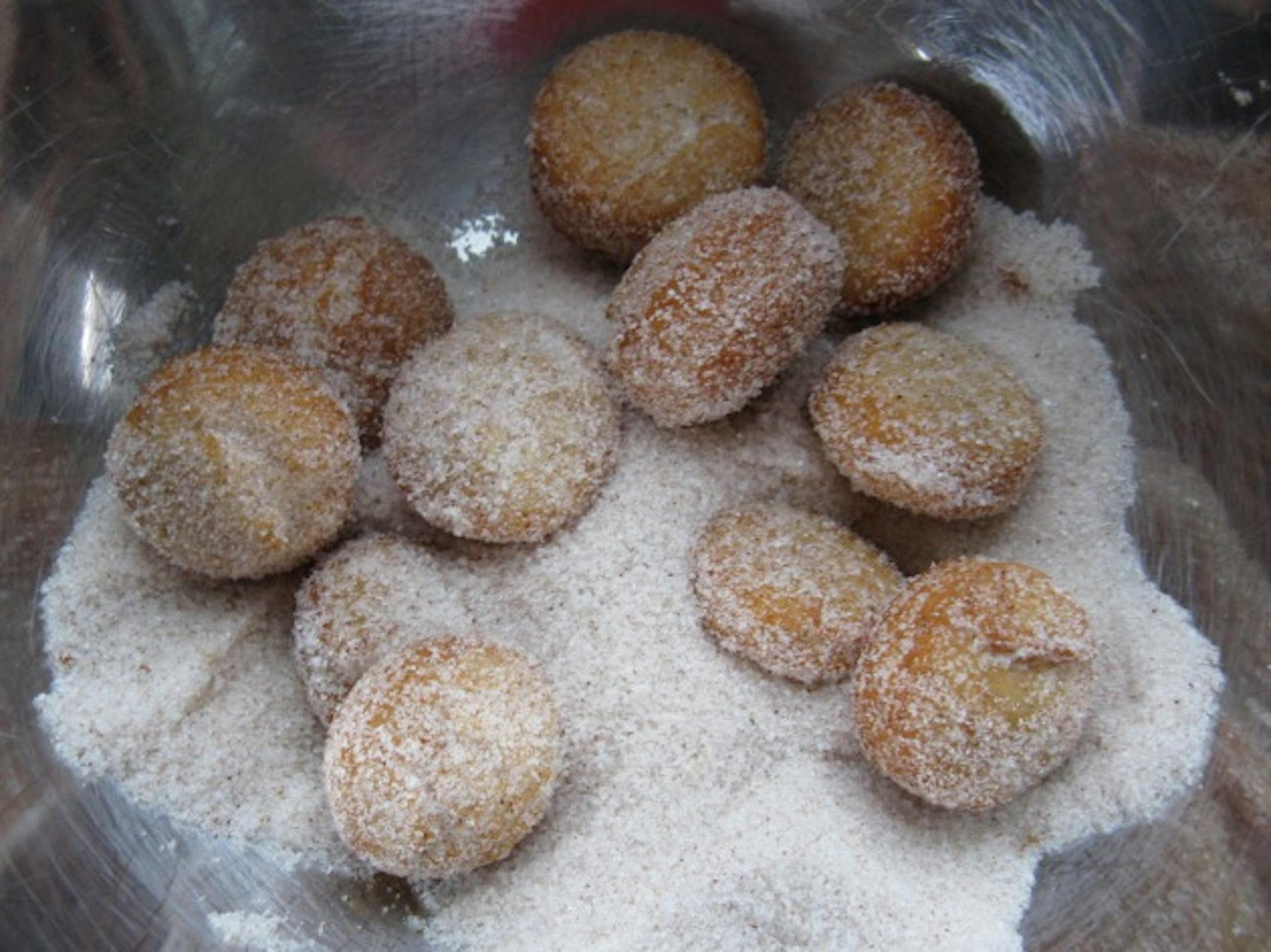 But my greater worry is wondering how many of these cute little doughnuts (and doughnut holes, which I tossed in sugar and cinnamon a few moments after they came out of the pan) will actually make it all the way to the office? After all, with winter storms like this one, it's wise to keep an emergency rations kit in the car.