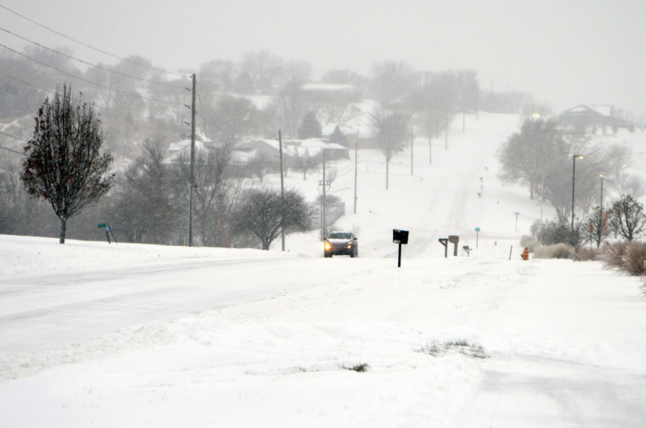 Snow-covered roads and slow travel were reported across Iowa and northern Illinois and Indiana.