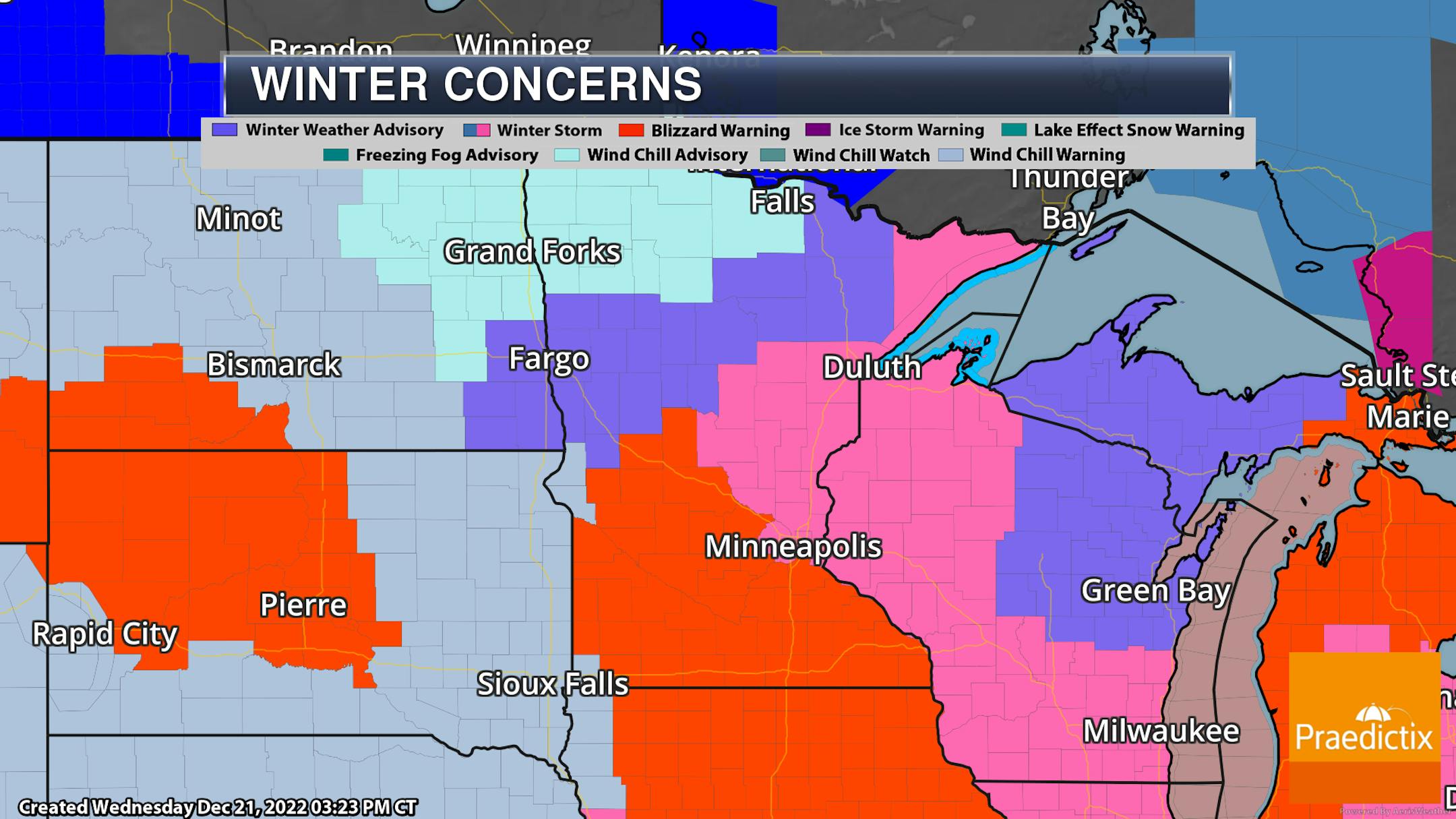 - Blizzard Warnings in place across parts of central/southern Minnesota.
