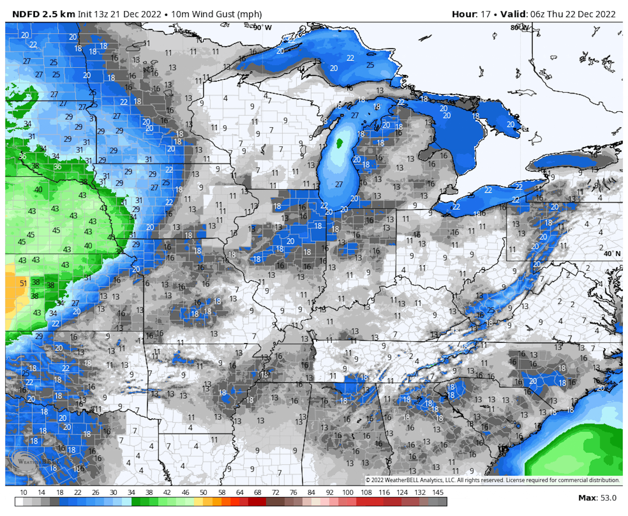 - Winds to ramp up later Thursday into Friday with numerous gusts of 35-50 mph, causing whiteout conditions.