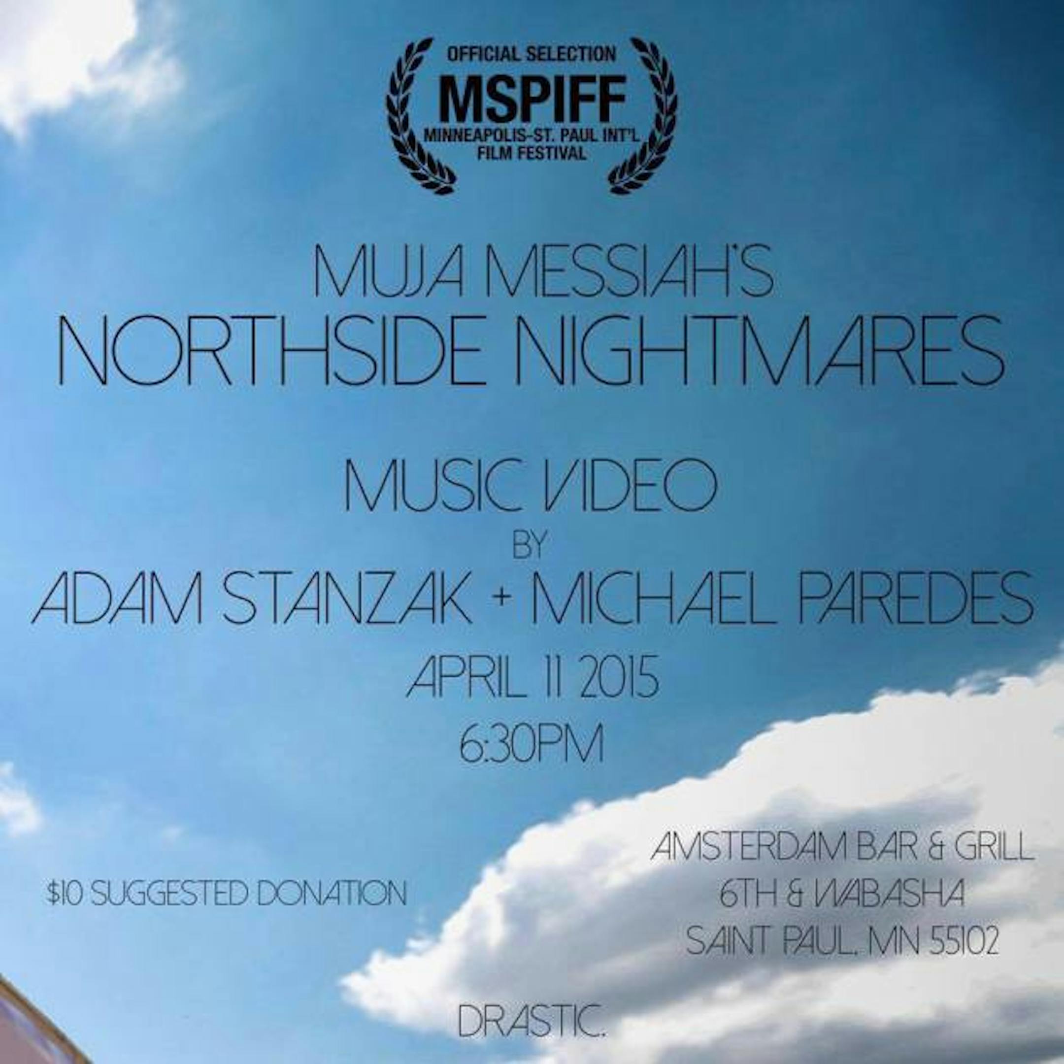 "People are afraid of the Northside for no reason at all. The Northside isn't a warzone, there's babies growing up in those neighborhoods and the only nightmare is the systematic depression from day 1 and that is the Northside Nightmares. The passion and the presence of the Northside is what creates the empowerment of the people organizing the community despite the confusion." -Muja "Coming back home to shoot Northside Nightmares was a proud experience. Now to have the project debut in the MSPIFF, it's a dream come true." -Adam Stanzak "I'm honored and humbled to have Northside Nightmares screening at the MSPIFF after all the hard work the team and myself put into making this film drastic." -Michael Paredes Everyone involved in the production is extremely pleased to have the project selected for the Minneapolis St. Paul International Film Festival. The video will screen at Amsterdam Bar & Grill in St. Paul, Saturday April 11 at 7pm.
