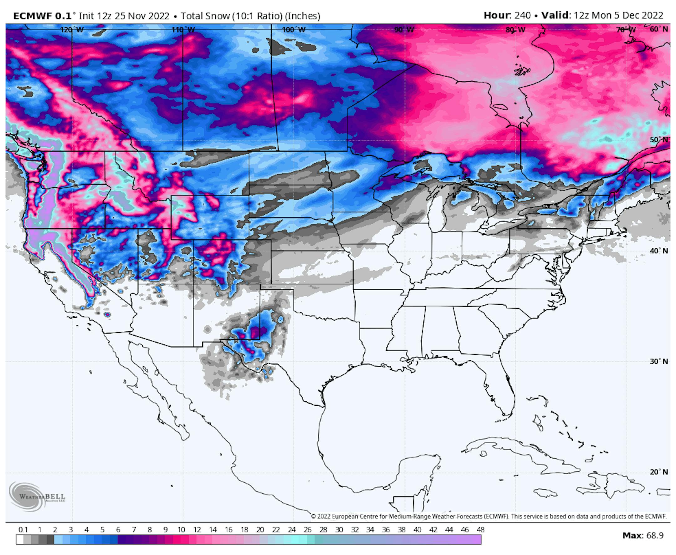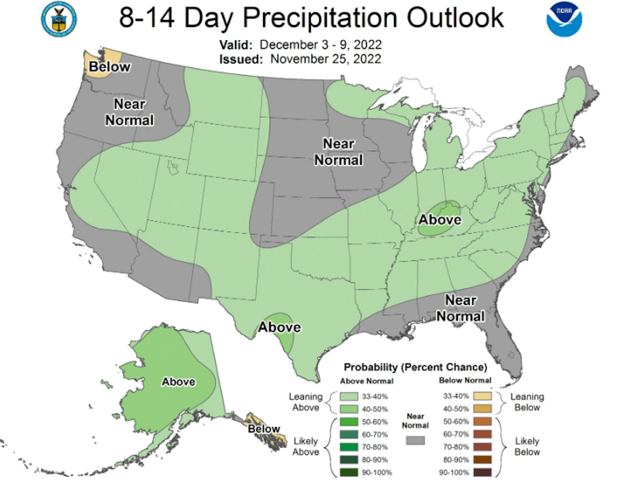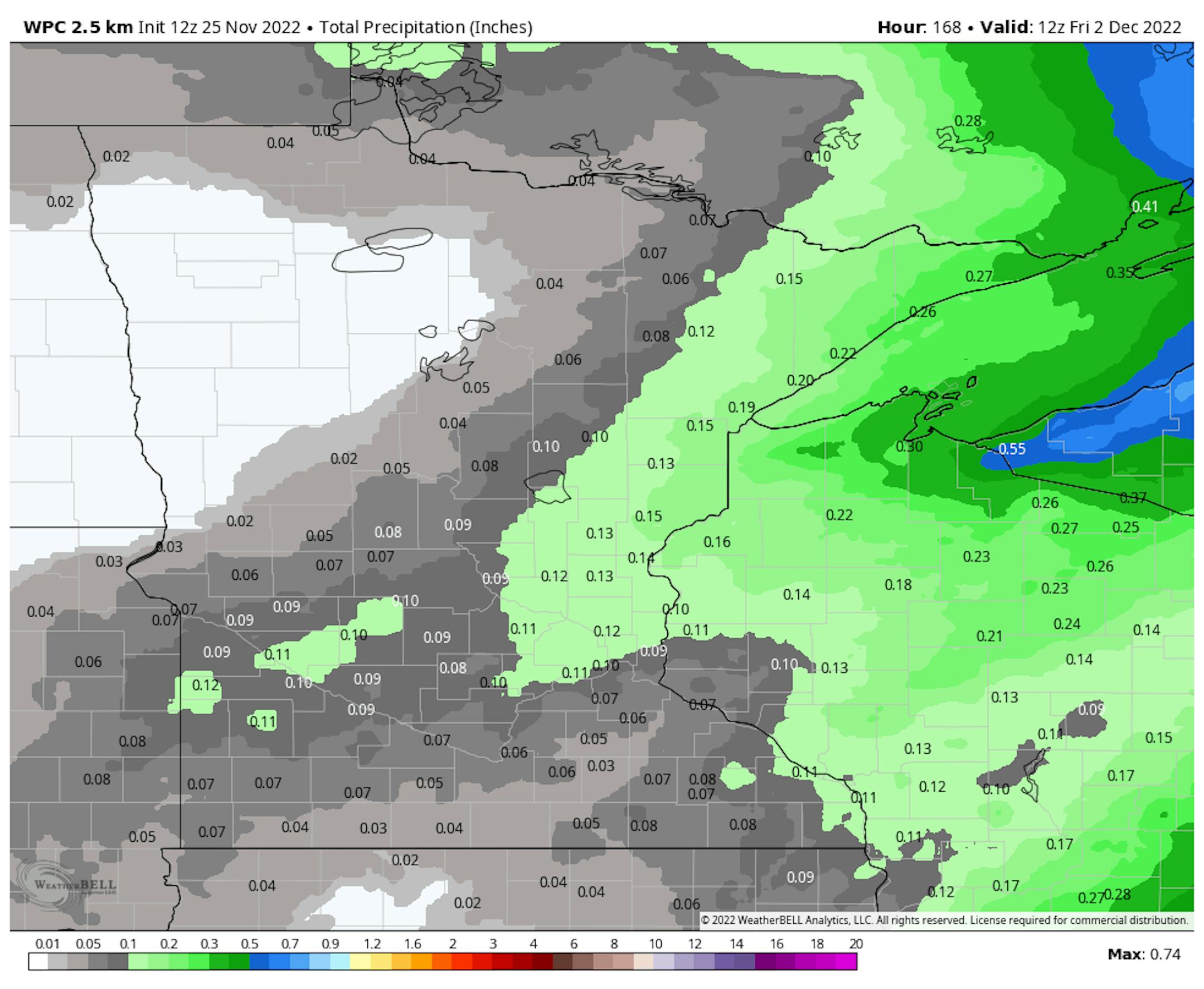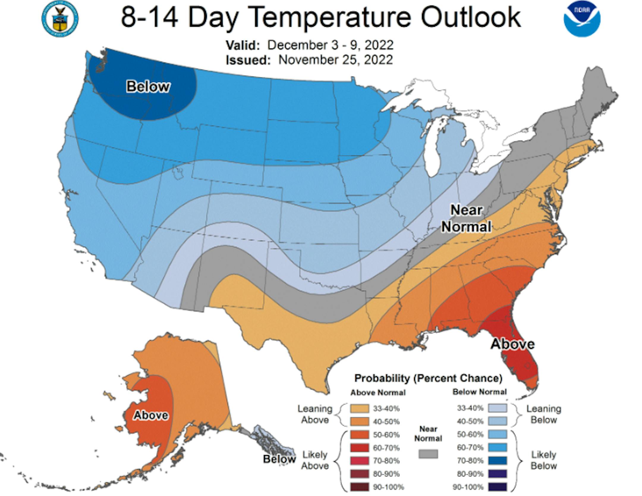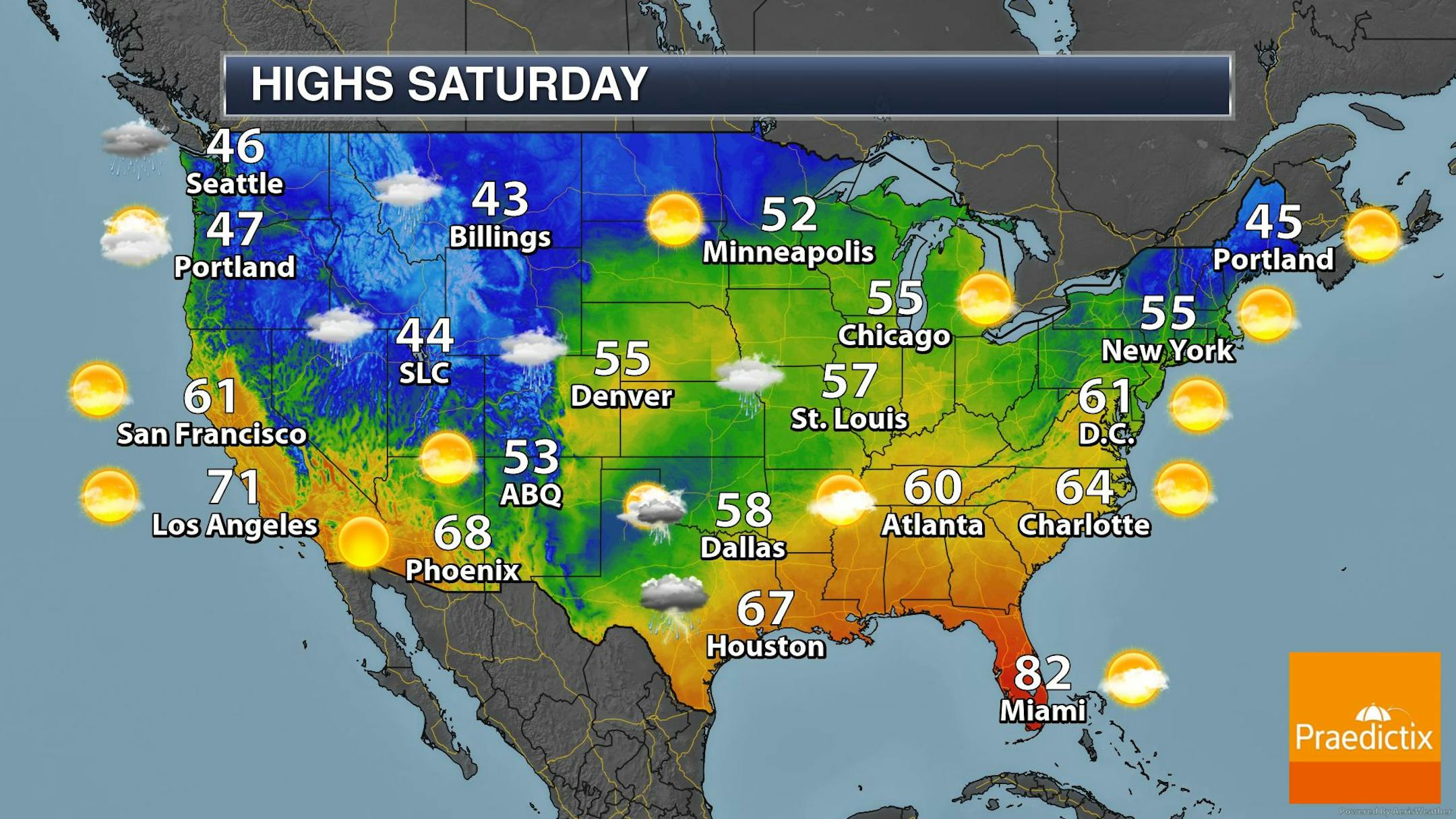 Much warmer than average temperatures continue on Saturday with highs approaching 50F. Sunday will be cooler with readings back down in the 30s with even cooler air moving in by the middle part of the week and through the first part of December.