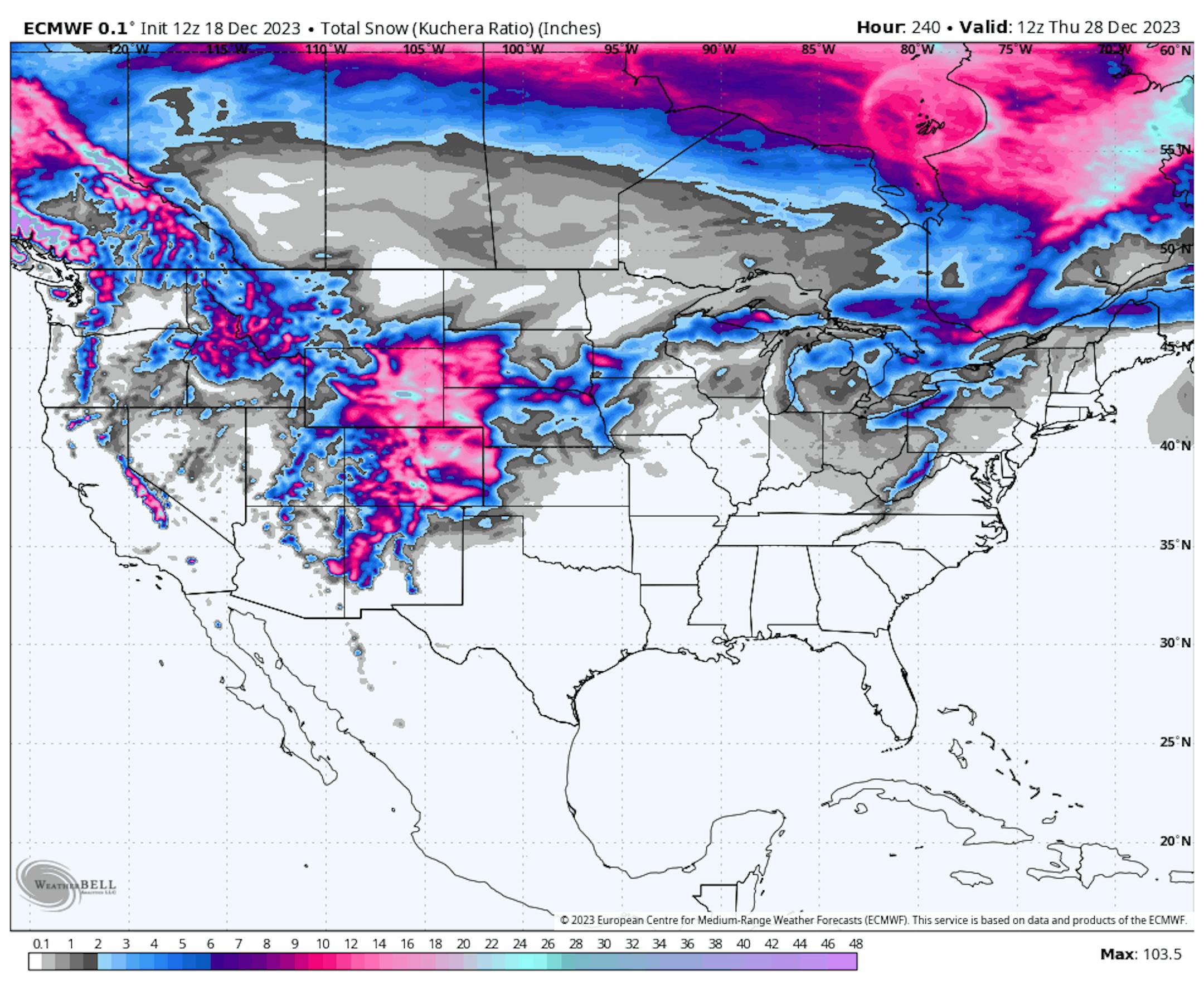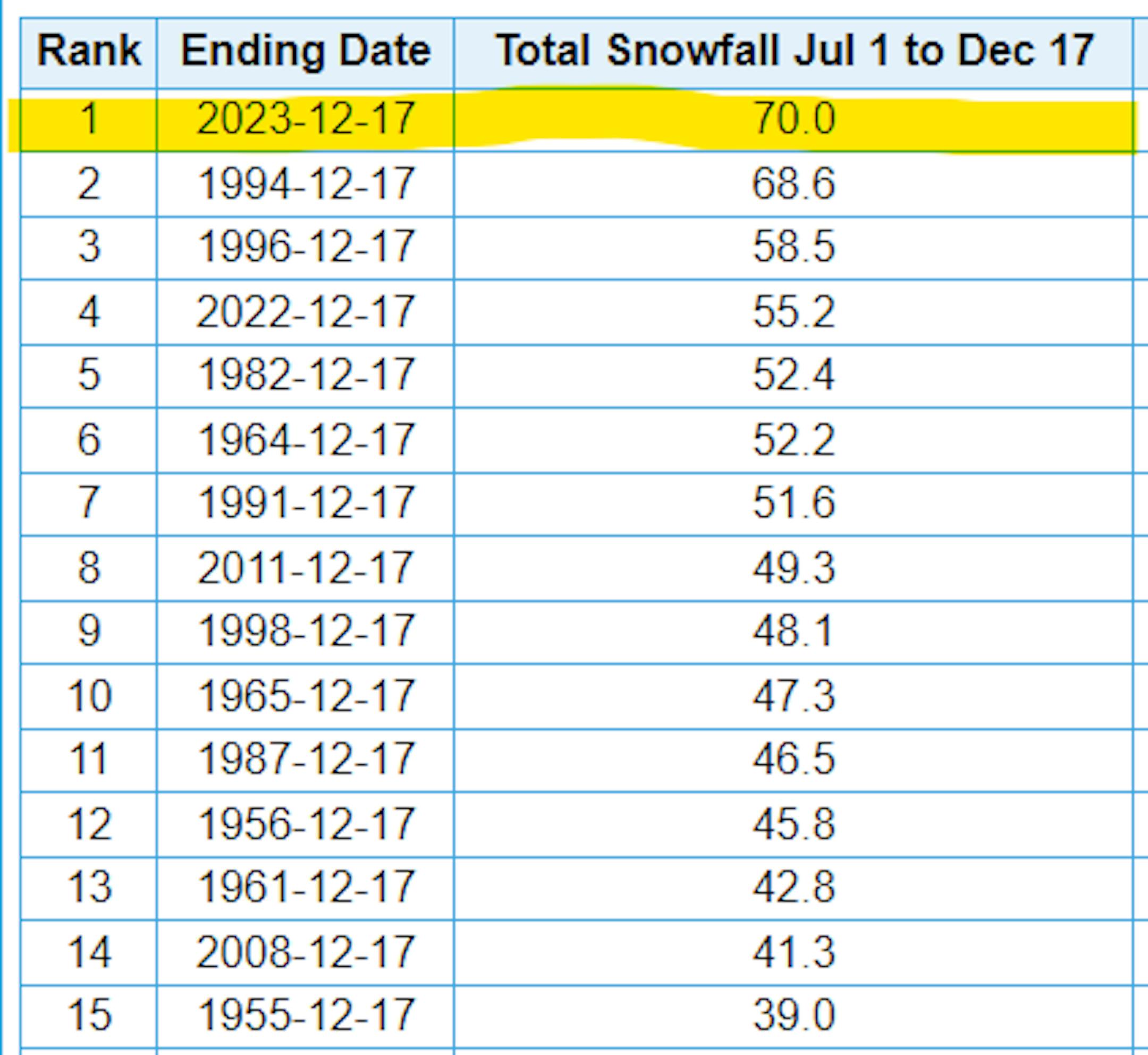 Believe it or not, Anchorage, AK has picked up nearly 70" of snow so far this season, which is the snowiest start to any season on record there (dating back to 1953). More snow fell on Monday and there is snow in the forecast every day through Christmas Day Monday.
