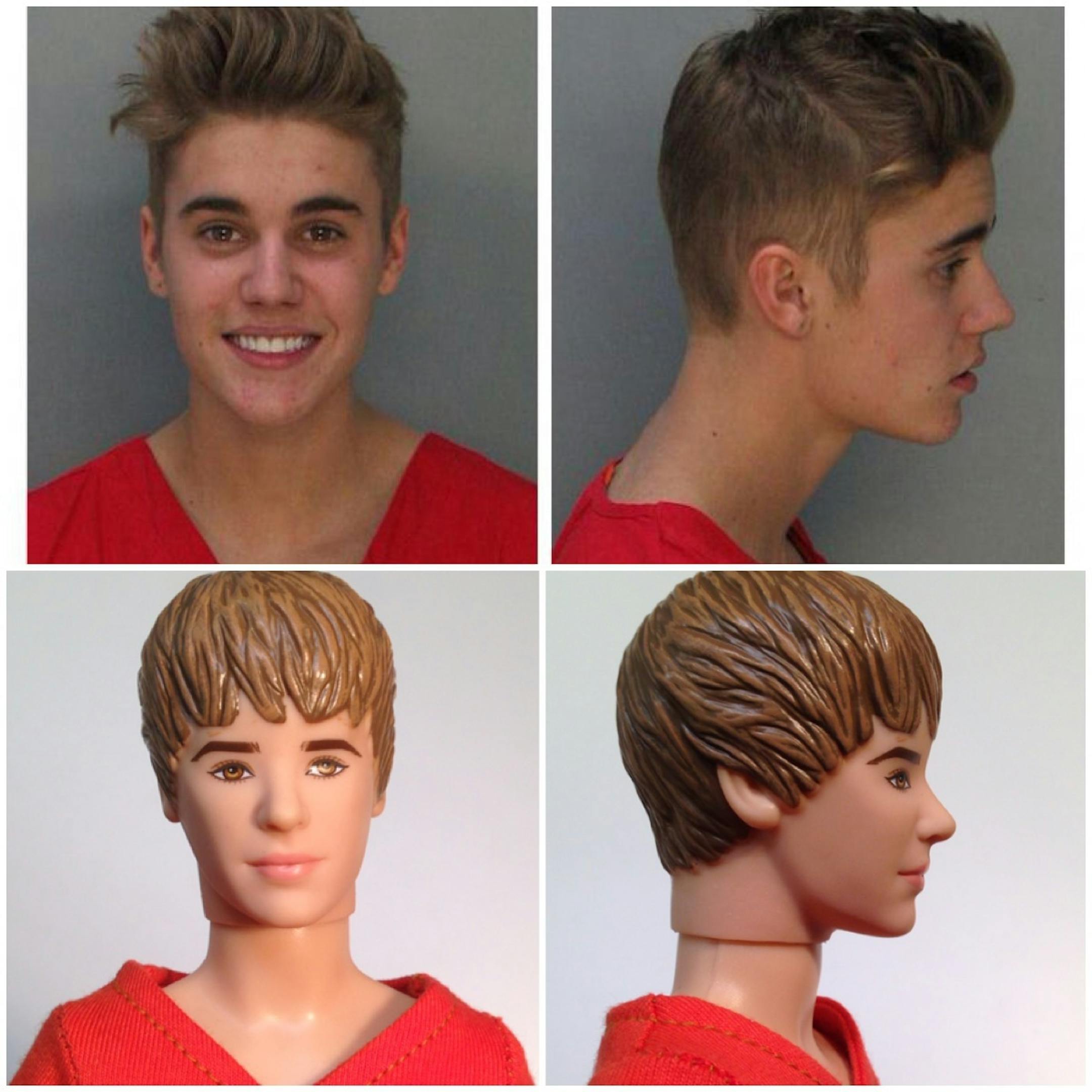 What's the best way to immortalize a pop star's jailhouse mug shot? For Minneapolis designer Christopher Straub, it's hand-crafting the clothes on a Justin Bieber doll and posting the results to Twitter and Instagram (via @schmistopher).