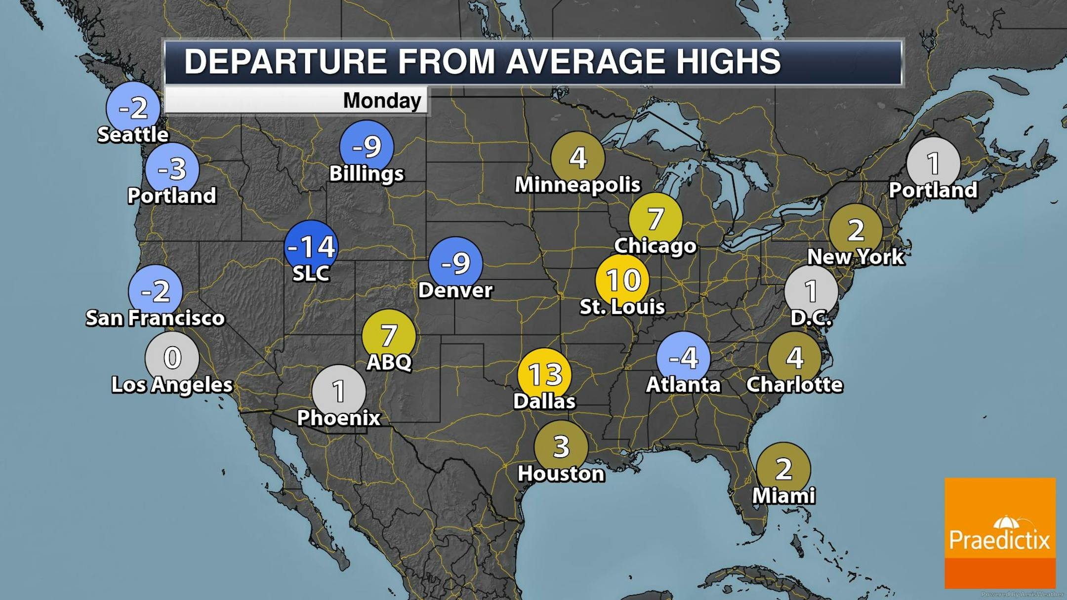 Highs on Monday will be closer to average on Monday, but they will be falling through the day. Interestingly, they will be nearly 20F cooler than they were on Sunday.
