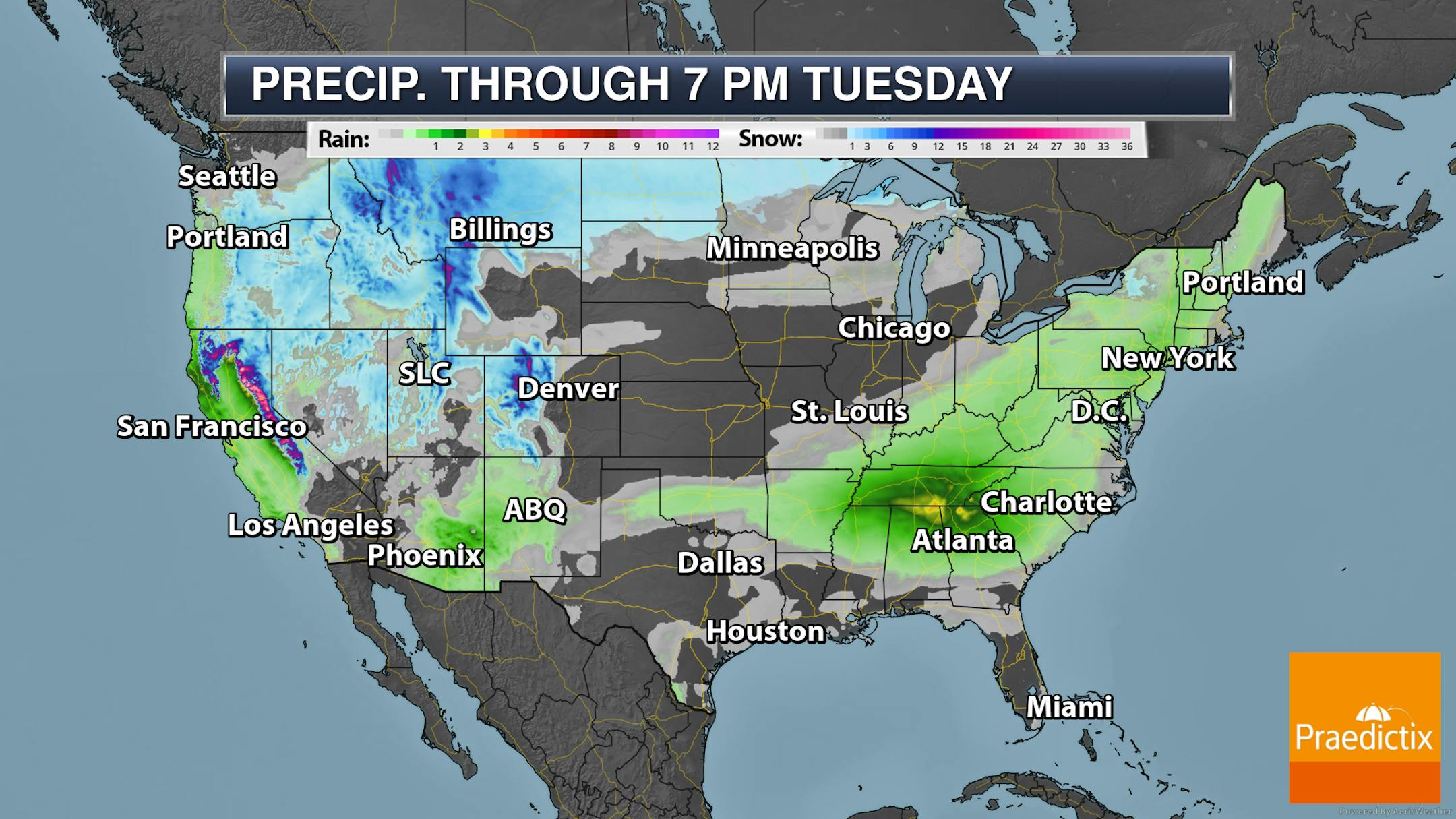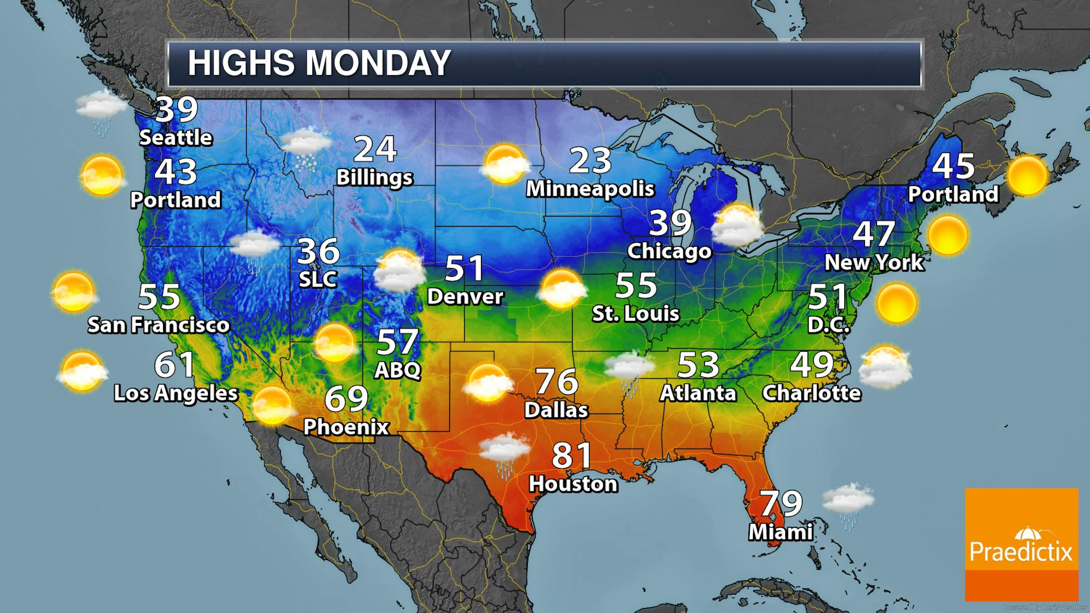 Between those two light batches of precipitation, we'll see mostly cloudy skies throughout much of the day - but there should be some peeks of sun. Highs will be in the teens and 20s - 5-15F degrees below average.