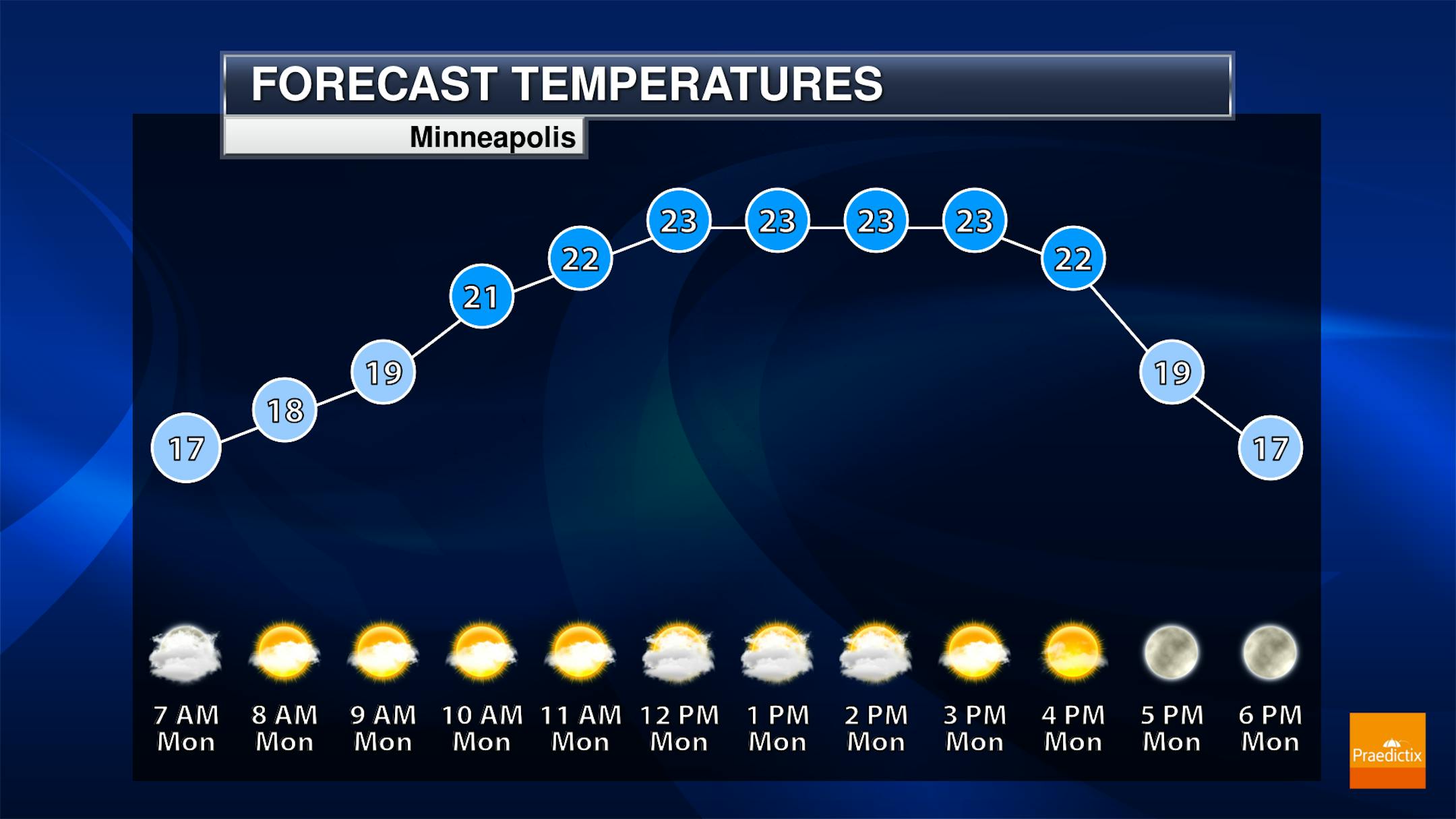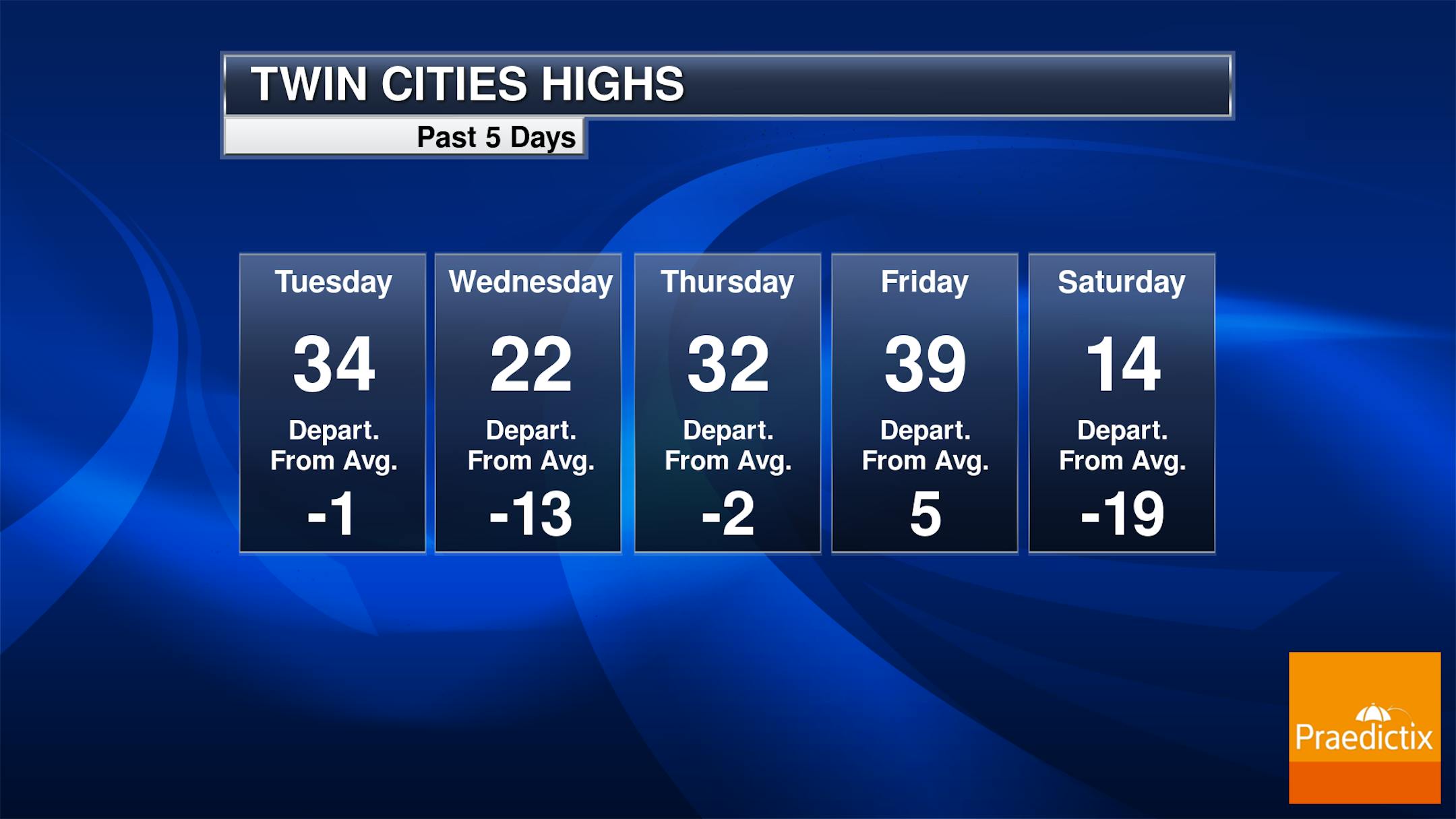 In the metro, we'll keep a very, very slight chance of seeing some light snow around in the morning hours, but again, the best chance of that will be to the south of the metro. Otherwise, a mix of sun and clouds to mostly cloudy skies are expected. Morning lows begin in the mid-teens with highs in the low to mid-20s. However, it'll feel like the teens in the afternoon due to northerly winds at 5-10 mph.