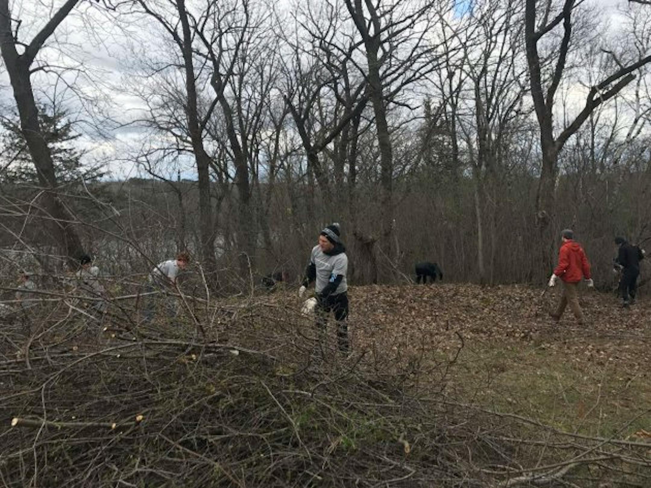 Defenders Justin Davis, Jermaine Taylor and Jerome Thiesson as well as goalkeeper John Alvbage helped clear buckthorn, an invasive species, from Afton State Park as part of Major League Soccer's week of service.