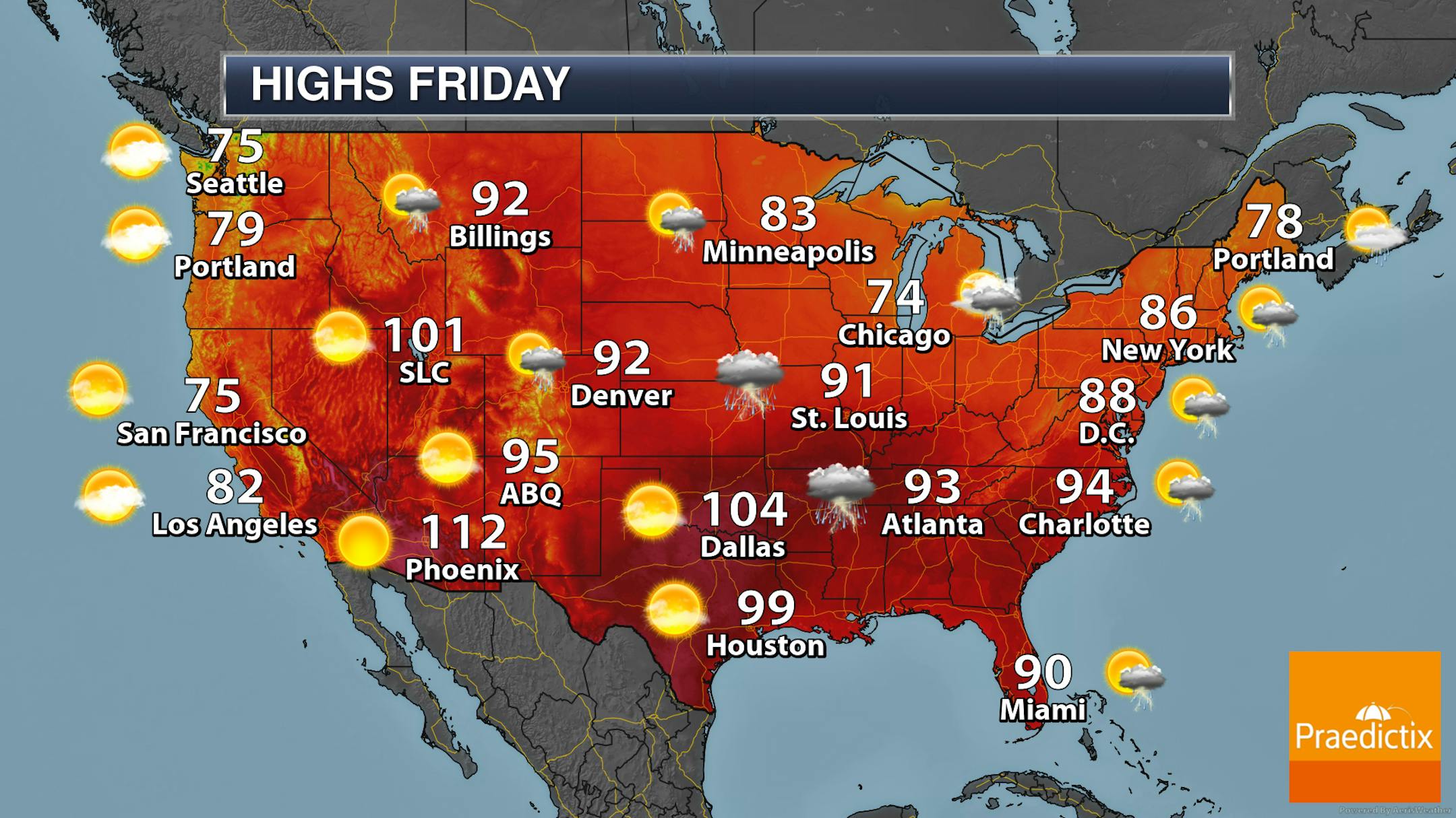 - Saturday: Saturday will be the driest and sunniest day of the weekend, with highs in the mid-80s. It also won't feel that sticky out as dew points will only be in the mid-50s.