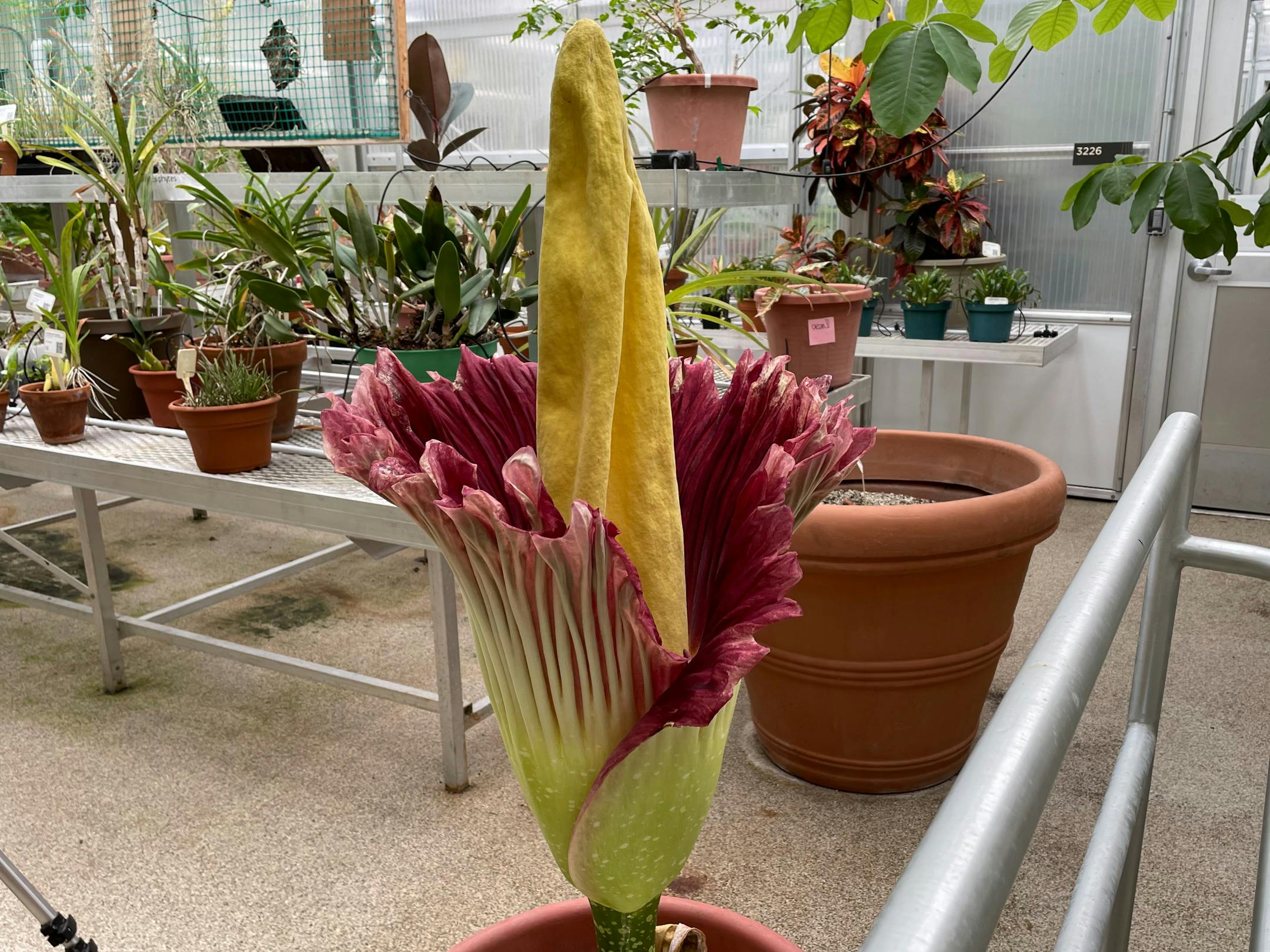 The Biology Department set up a livestream for curious Minnesotans to watch the plant bloom. Signs directed visitors to the greenhouse on the third floor of the campus’ Nobel Hall of Science, where on Sunday visitors could observe the plant through a window.