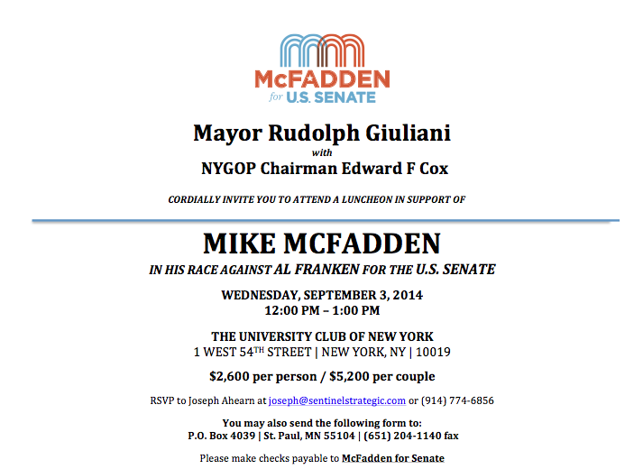 McFadden was in New York City for a high dollar fundraiser with former New York Mayor Rudy Giuliani. Franken will travel to Chicago for a low-dollar fundraiser with Illinois Sen. Dick Durbin.
